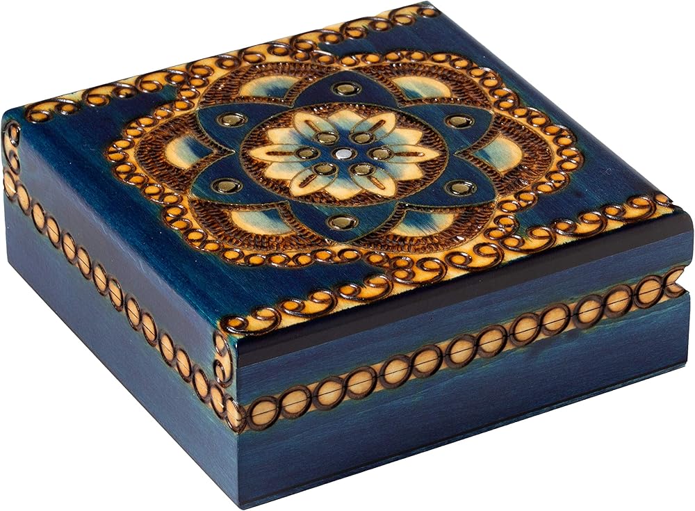 مصنوعة يدويًا بشكل جميل في بولندا بتصميم منحوت بشكل معقد على الغطاء والجوانب