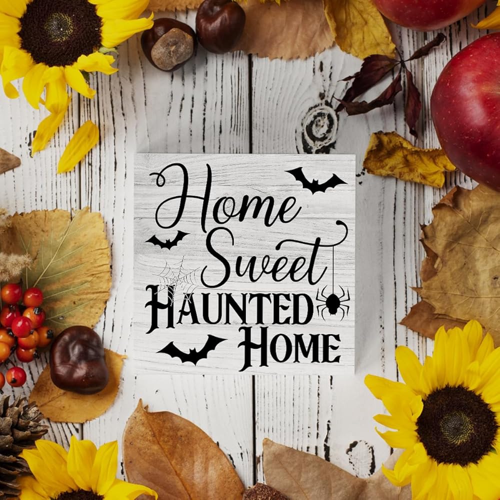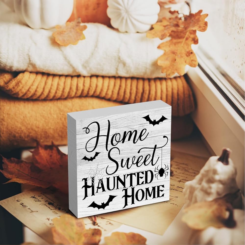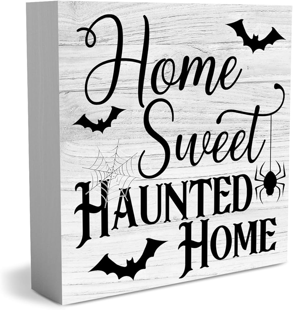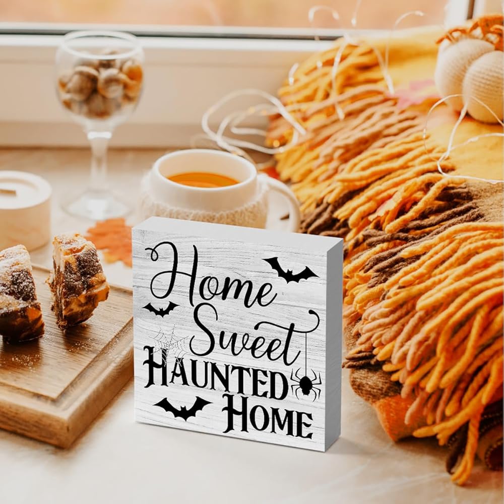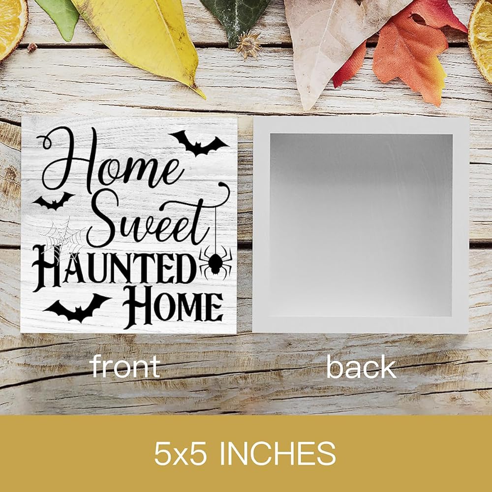 البلد هالوين صندوق خشبي علامة الخريف ريفي مزرعة نمط المنزل الحلو مسكون المنزل الخشب كتلة اللوحة 5 × 5 بوصة مكتب المنزل تسجيل ديكور للهدايا