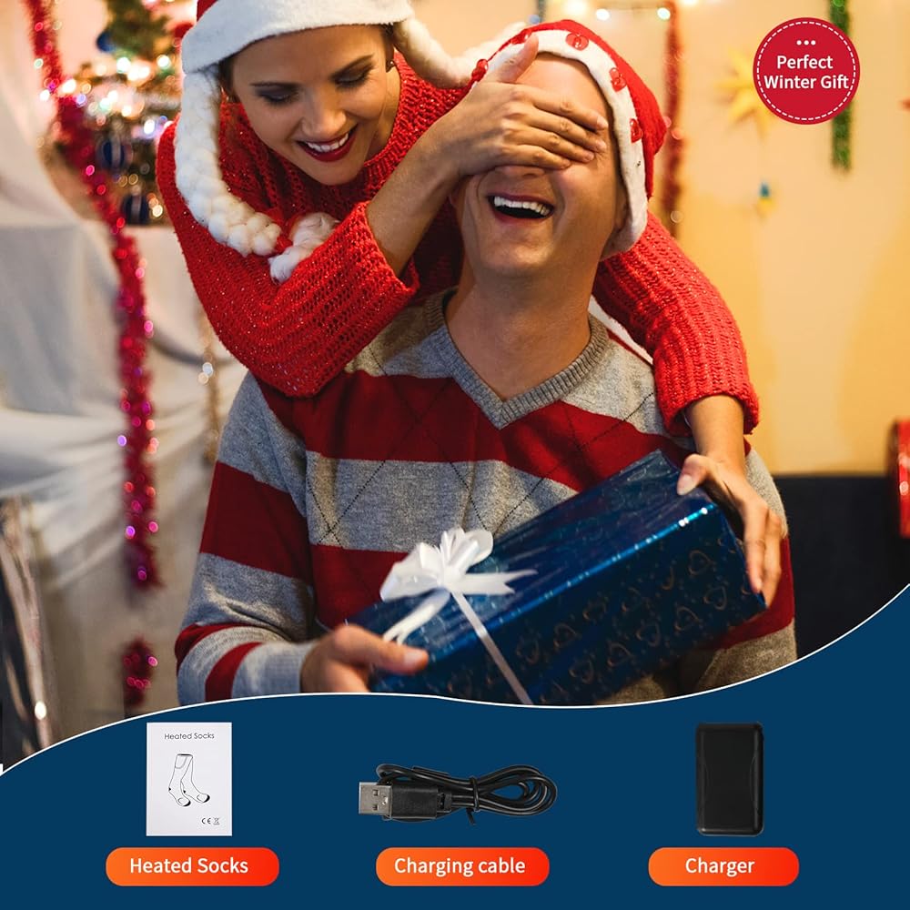 <p>🔥【Rechargeable Warm Socks Including】You'll get 1 pair of heated socks, 2pcs 4000mAh batteries, 1pcs charger, and 1pcs user manual. Accept clean with machine wash (in washing bag). Heated socks are given to your family and friends as winter ideal gifts, they will have a warm winter when taking part in outdoor activities.</p>