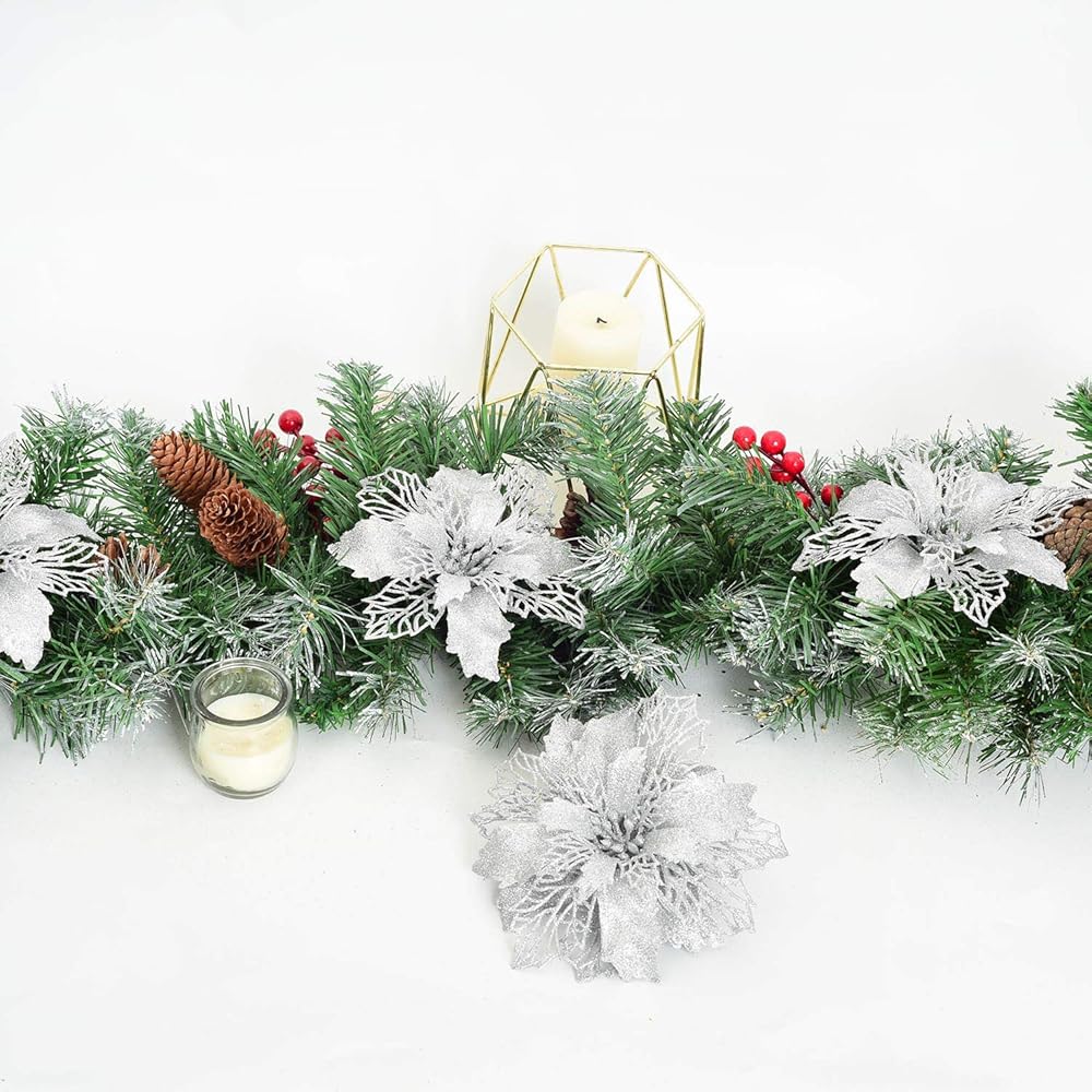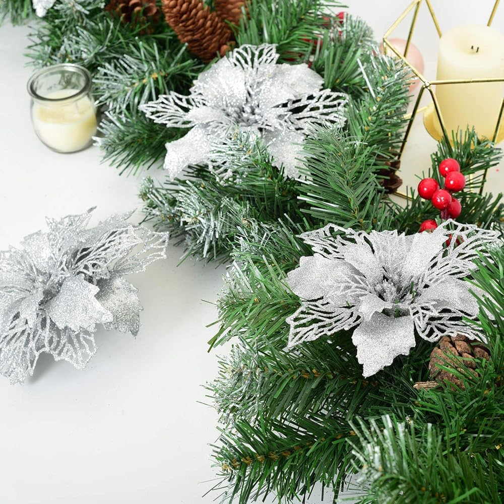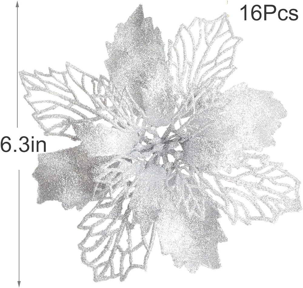 -Ornate Poinsettia to light up your holiday, it's normal for the glitter a little shed off. Decorate your Christmas Trees or Christmas Wreaths with these glitter poinsettias.
