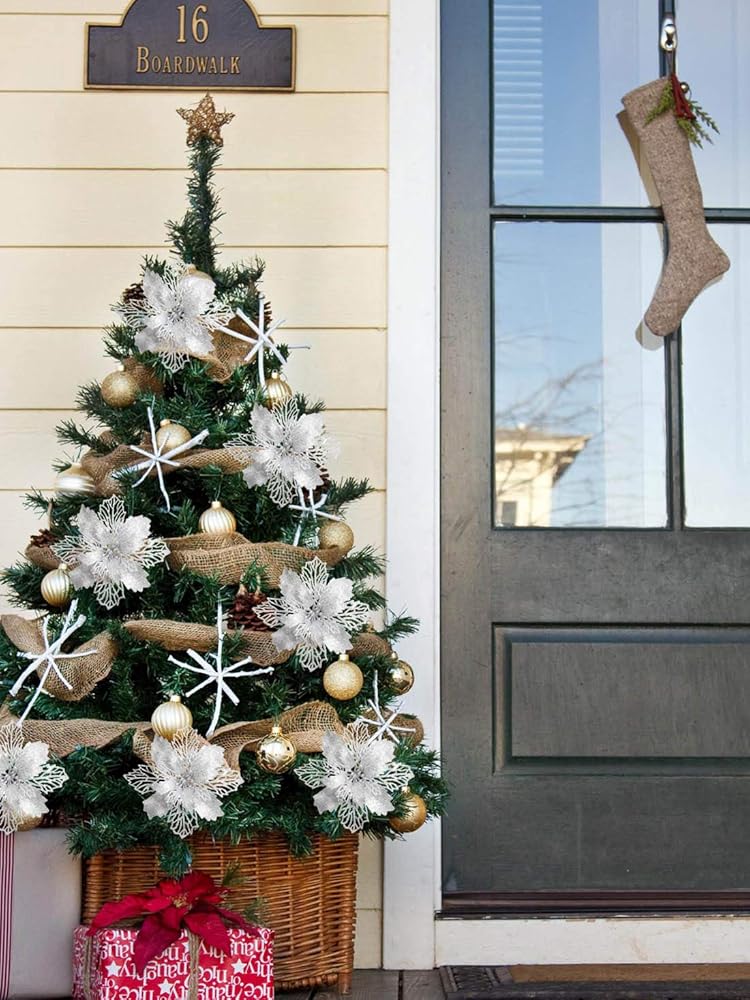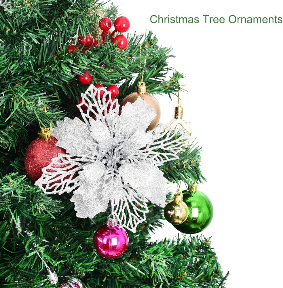 Artiflr 16pcs Christmas Tree Flowers Ornaments -- These Flowers ornaments are made of premium plastic and covered with sparkling glitters, which are specially designed for seasonal & holiday decoration