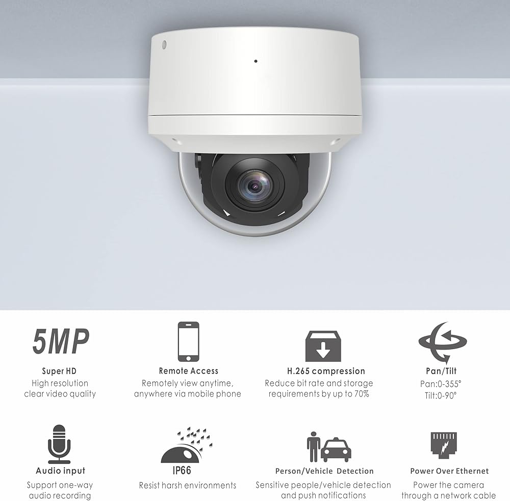 【إدخال الصوت】تتميز كاميرا IP POE Pan Tilt Dome هذه بوظيفة صوت ميكروفون مدمج، وتوفر صوتًا ممتدًا في الوظيفة عندما تريد شاشة صوت. (لا تحتاج إلى ميكروفون منفصل)