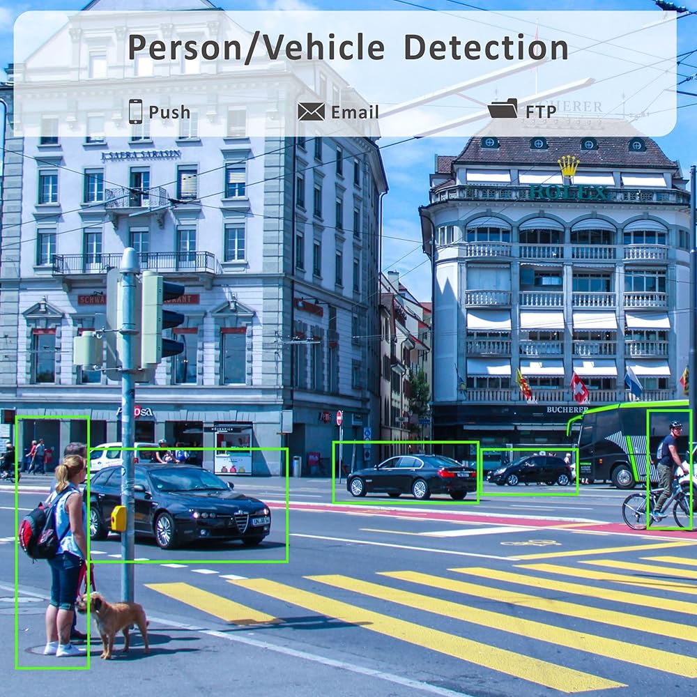 【IP66 مقاومة للماء وعدسة ثابتة 2.8 مم + رؤية ليلية ممتازة】العلبة مصنوعة من المعدن بمستوى IP66 المقاوم للماء. أجهزة مدمجة للحماية من الصواعق والصواعق في الأحوال الجوية السيئة. توفر العدسة الثابتة مقاس 2.8 مم زاوية رؤية واسعة 110 درجة ورؤية ليلية تصل إلى 60 قدمًا.