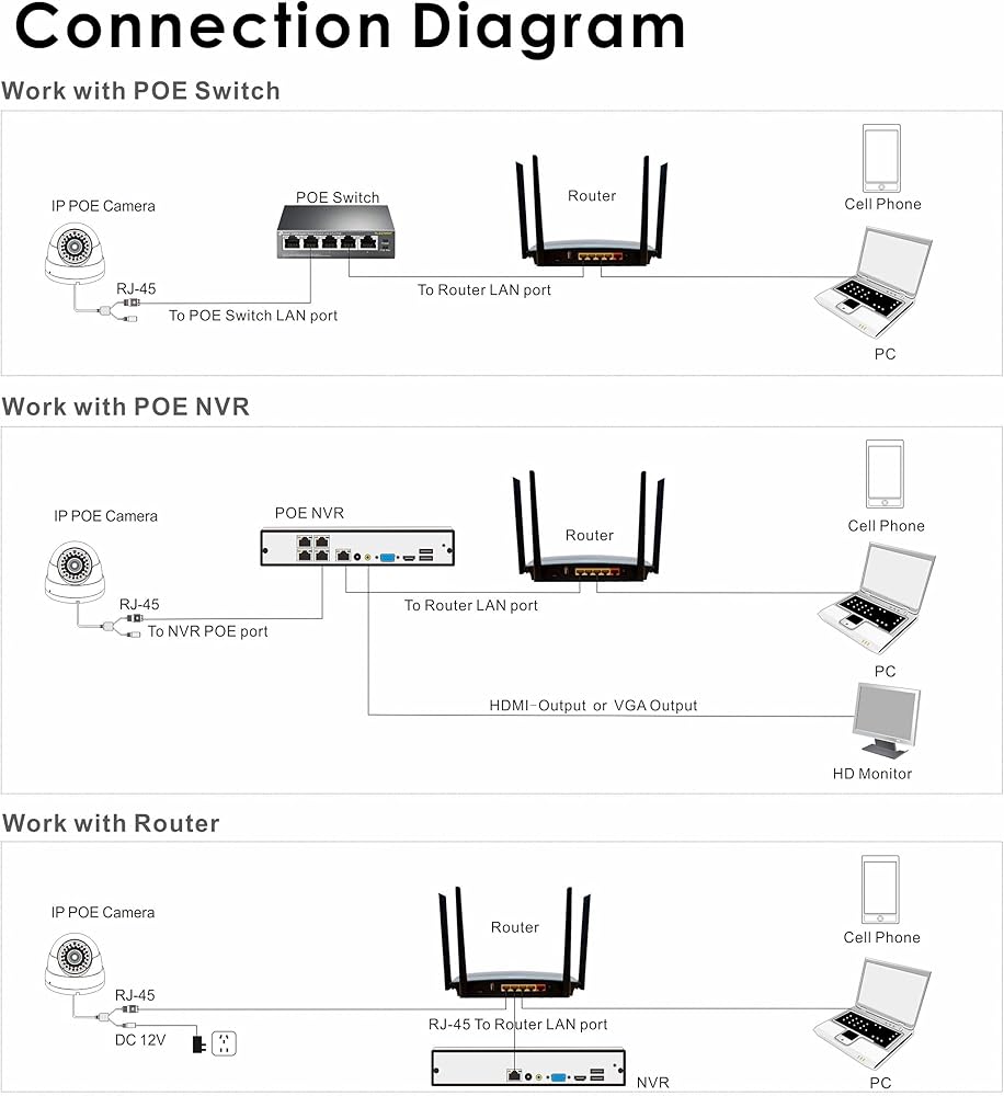【PoE + التوصيل والتشغيل مع Hikvision NVR 】 مع وظيفة PoE (الطاقة عبر الإيثرنت)، لا حاجة إلى محول طاقة، يمكن أن تعمل مع مفتاح PoE/حاقن PoE أو PoE NVRs؛ دعم ضغط H.265/H.264 (افتراضي H.265) متوافق مع أجهزة NVR متعددة 5MP/4K H.265 PoE؛ التوصيل والتشغيل مع Hikvision، وLTS، وEZVIZ PoE NVRs، والعمل مع Dahua، وLorex، وUniview، وTVT، وRaysharp NVRs بعد تمكين DHCP. (تمكين DHCP الافتراضي)