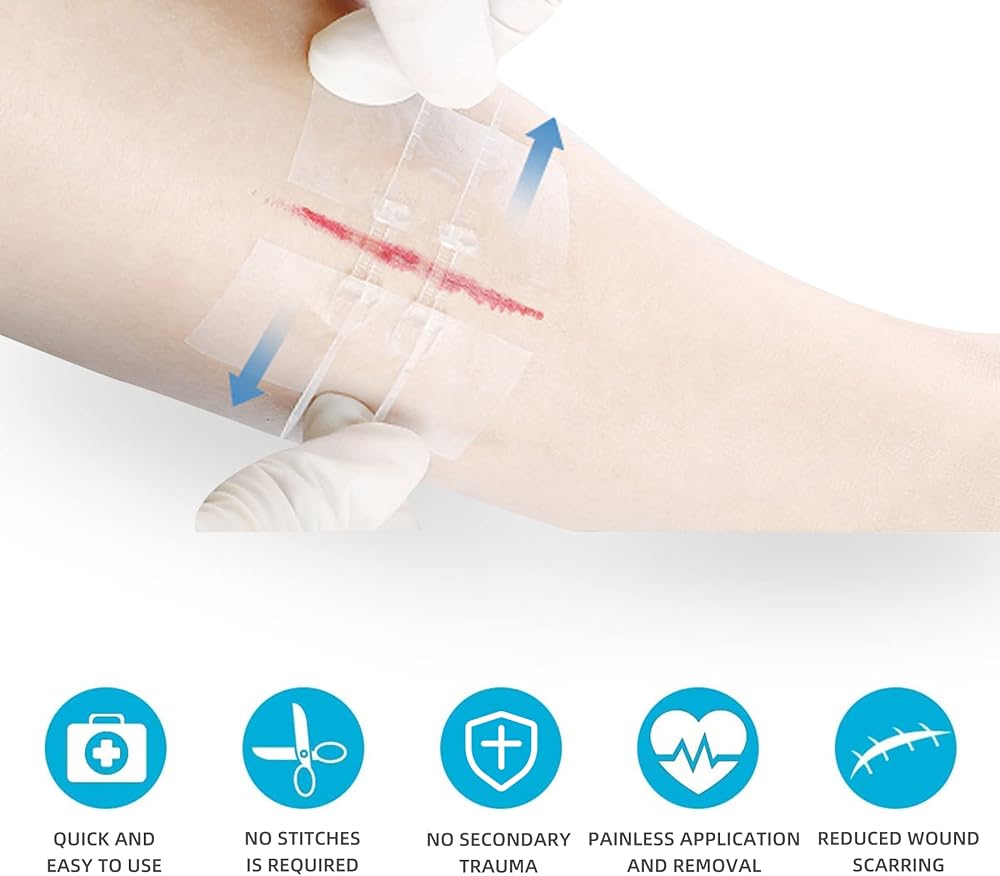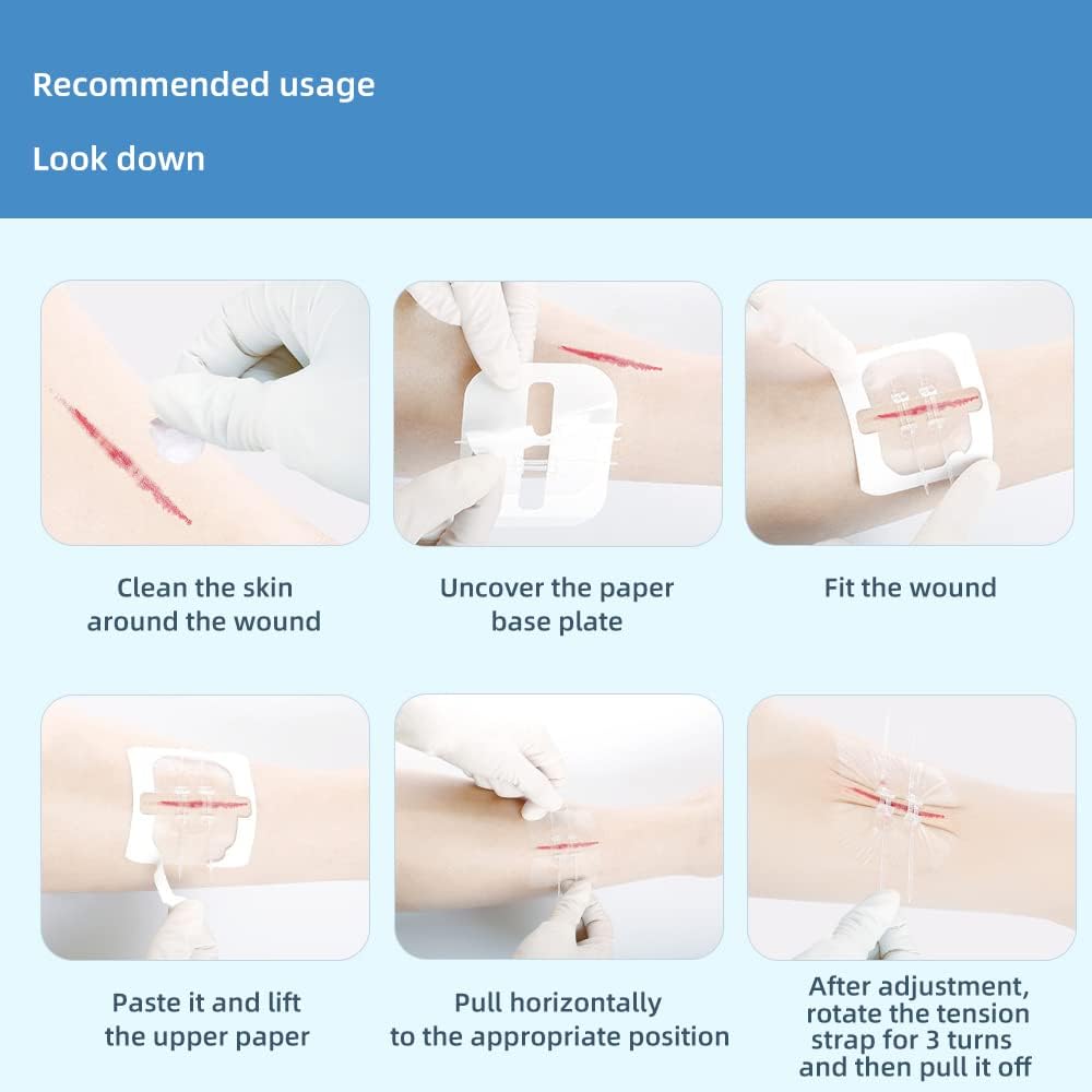 الحماية في حالات الطوارئ: الغرز تحميك أنت وعائلتك من تلف الجلد. قم بتخزين مجموعة الأربطة هذه في منزلك أو سيارتك أو مكتبك أو في حقائب الظهر الخاصة بك عندما تذهب للمشي لمسافات طويلة أو النزهة.