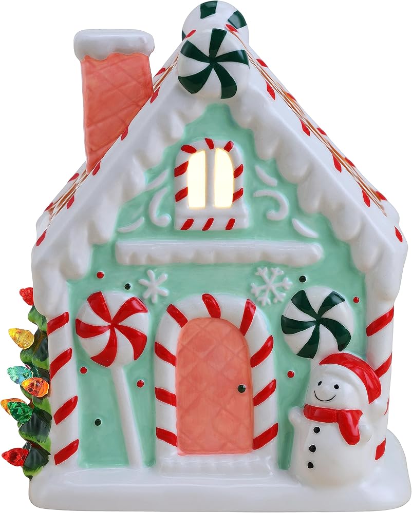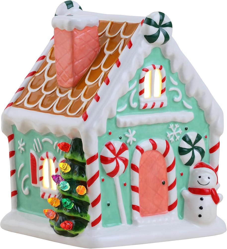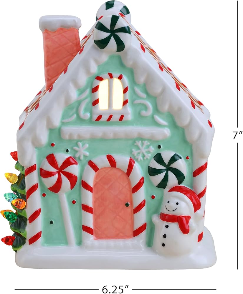 The 7" ceramic gingerbread house is a delightful and festive addition to any holiday decor. With its intricate details and glossy finish, this gingerbread house looks good enough to eat. The house features window cutouts that allow an LED light to shine through, creating a warm and inviting glow that will fill any room with holiday cheer. The gingerbread house is battery operated, requiring 2 x AA batteries that are not included, making it easy to place anywhere in your home. Whether used as part of a larger holiday display or on its own, the 7" ceramic gingerbread house is sure to delight and enchant anyone who sees it.