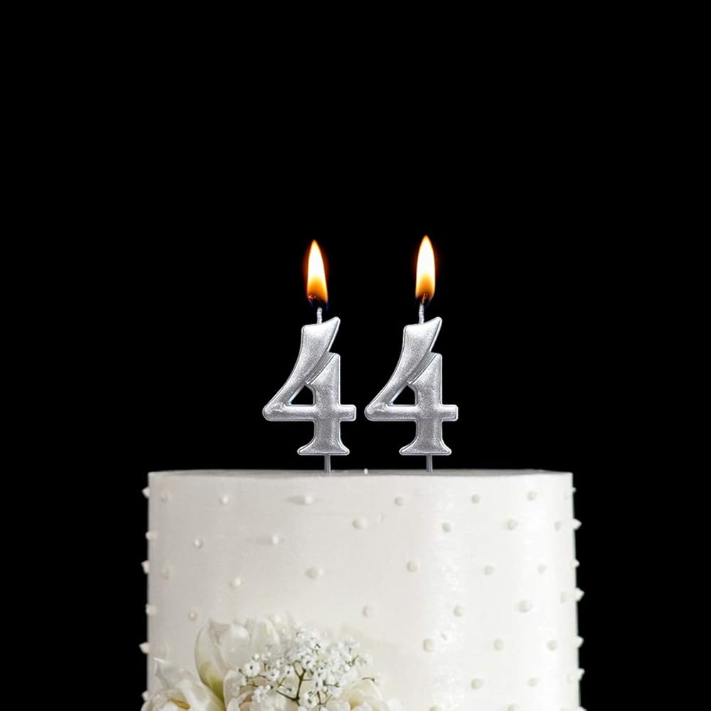 ماجوتشي شمعة فضية بتصميم رقم 44 لعيد الميلاد 44، شموع زينة لتزيين الكيك للنساء والرجال