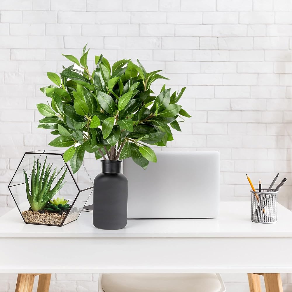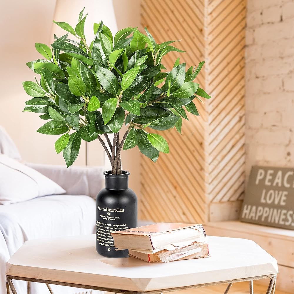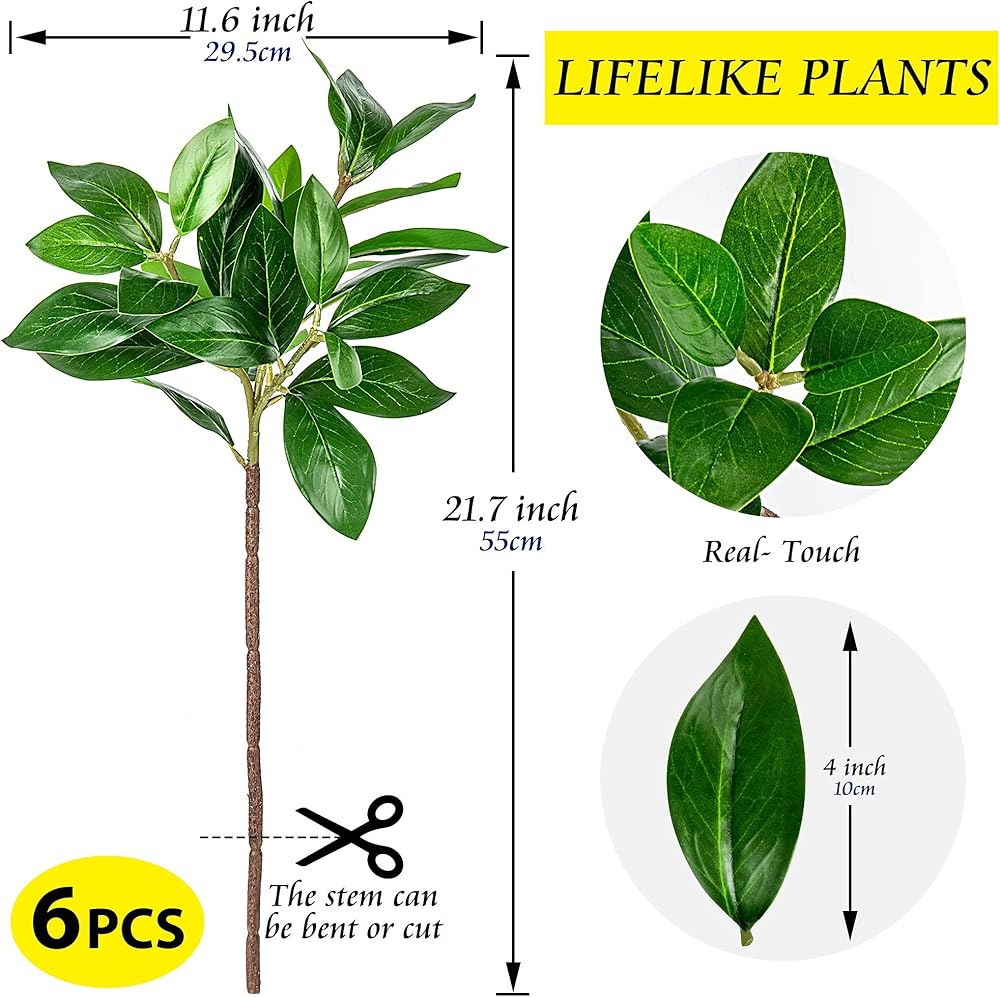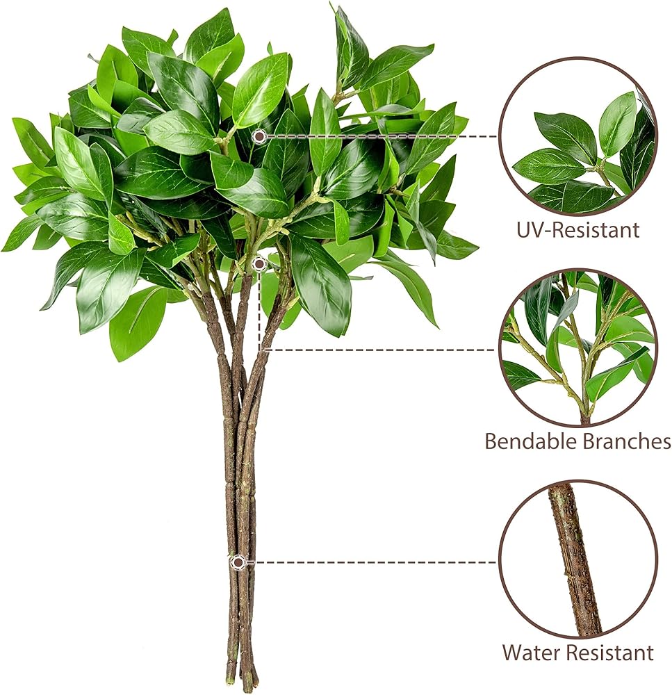 DIY Tips: Realistic stem and branches are bendable. There is a metal wire inside, covered with plastic. Fluff them and straighten the leaves. Stems are water-resistant. You can add water to your vase for a real-like look. Total plant length: 1.75 feet long. If the stem is too long for your container, it can be bent, or trimmed with scissors or pliers. Fake dark green leaves look cute both in a jar and basket. Crafting options are endless. It is great greenery for Christmas wreath making, centerpiece filler, green wall, and other projects. You can easily “plant” our nearly natural faux branches in your farmhouse planter or just into backyard soil.