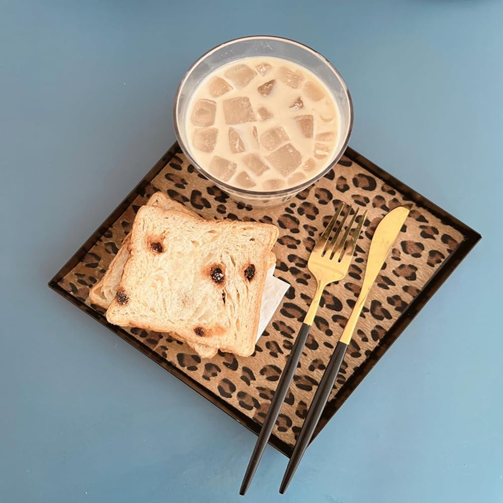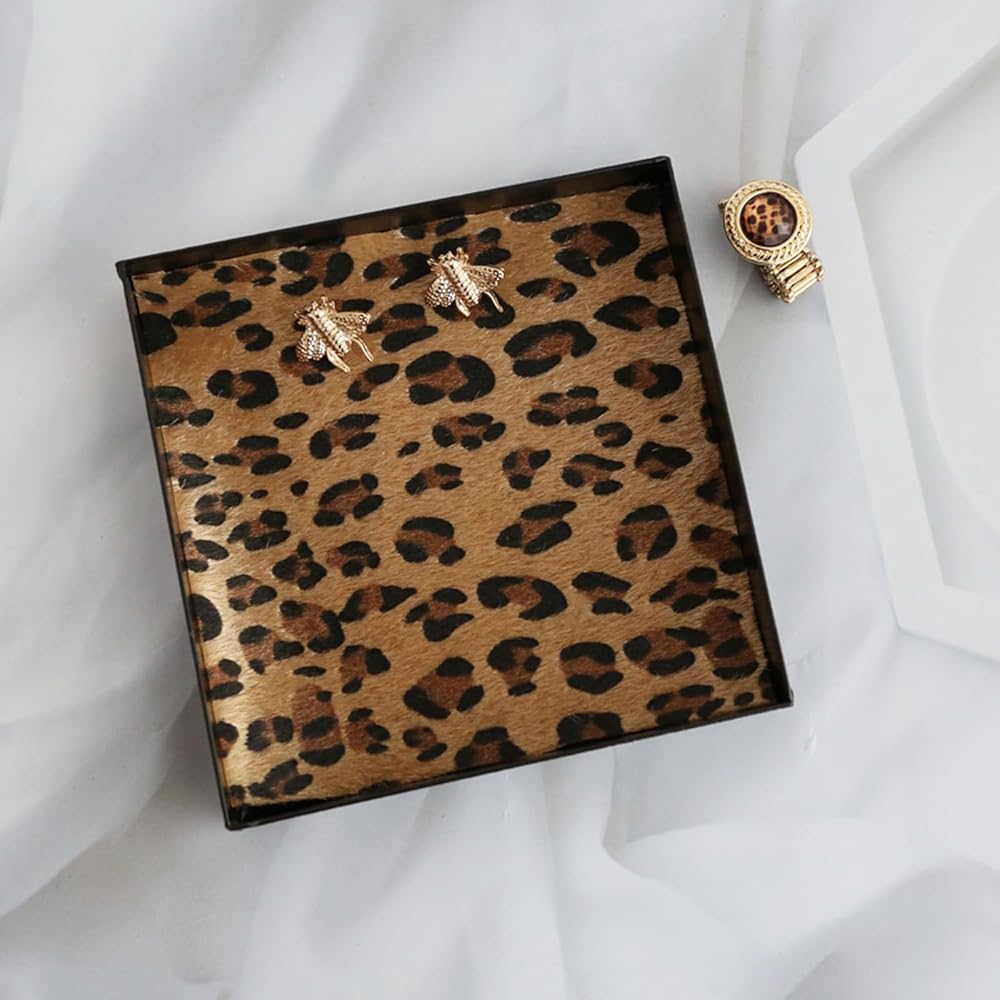 Square jewelry tray is made by high quality iron,leopard print made by leather;Compared with ceramic trays,our product is larger and it is easy to keep clean.More space to storage your gadgets.