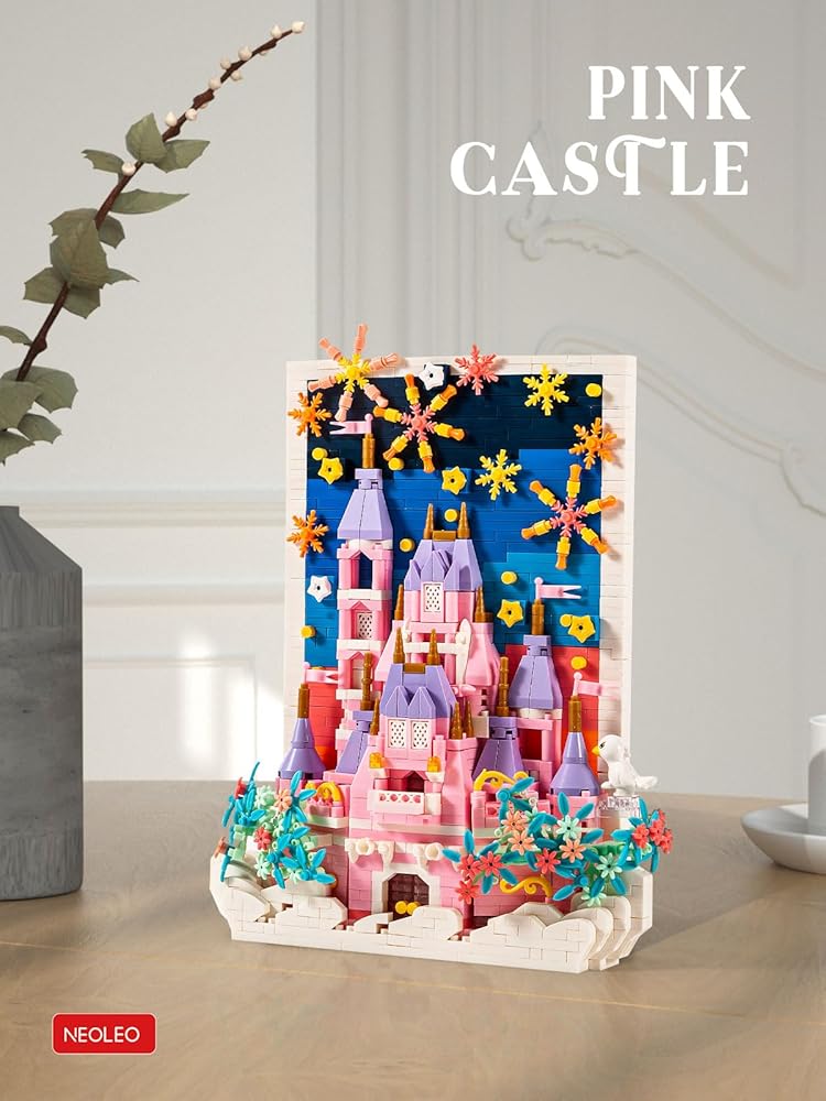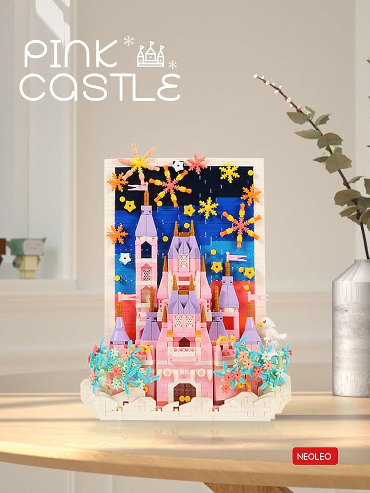 NeoLeo Painting Art Pink Castle – The Great Unique 3D Wall(1669PCS), 3D Wall Art Craft Kit, Framed Canvas for Adults - NL1178