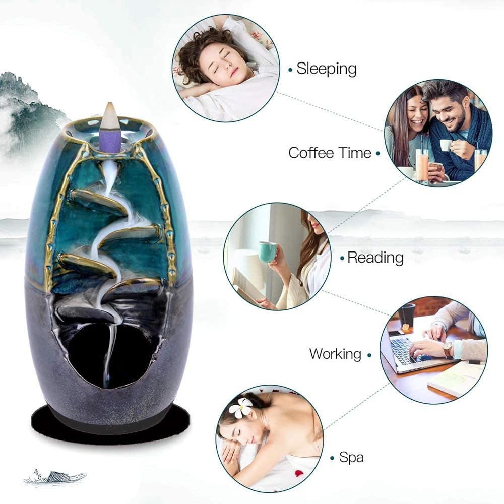 • 【مظهر رائع】تم تصنيع موقد الشلال البخور يدويًا من السيراميك عالي الجودة. استخدمه مع مخروط البخور يساعد على تنقية الهواء والتأمل والاسترخاء، وسينقط الدخان في حمام السباحة مثل الشلال، ويتدفق ببطء إلى الأسفل، والكامل بالغموض عند التحديق.