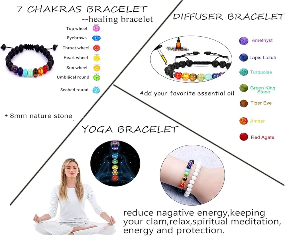 • أساور شفاء - سوار شاكرا المعالج الخاص بنا مصنوع من خرز حجري طبيعي، أسقط الزيت العطري على خرز الحجر البركاني ويمكن أن تبقى الرائحة لفترة طويلة. سوار 7 شاكرا مناسب لسوار اليوغا وسوار التأمل والسوار العلاجي وغيرها من المناسبات المتوازنة، يمنحك أفضل الشفاء والتوازن وصنع القرار والاسترخاء.