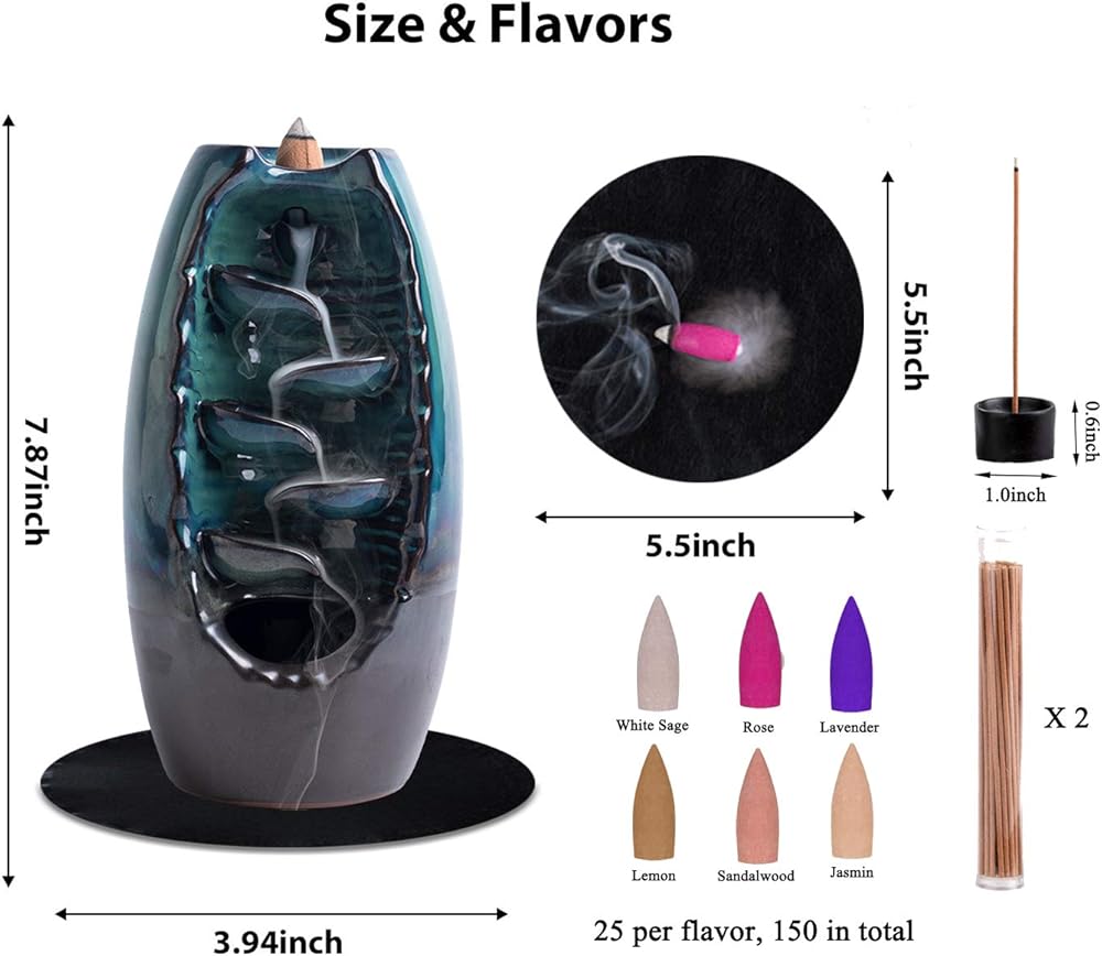 مبخرة الشلال مع 180 مخاريط للبخور مع 60 عصا للبخور ، سوار شاكرا ، ملقاط ، حامل بخور ، حصيرة مقاومة للحريق