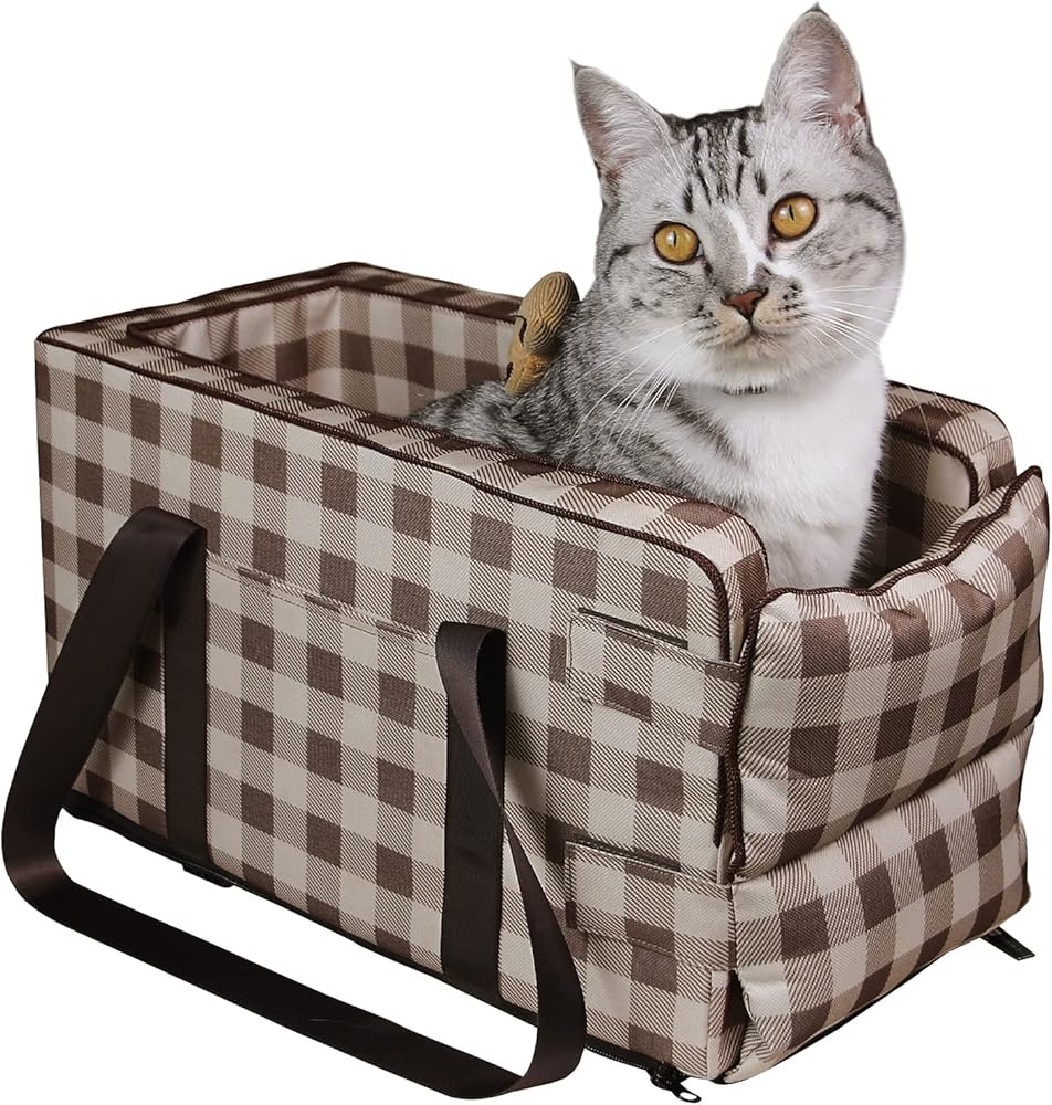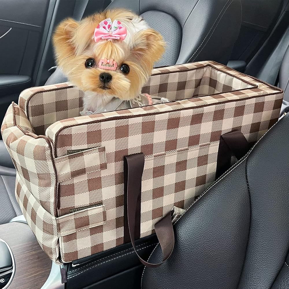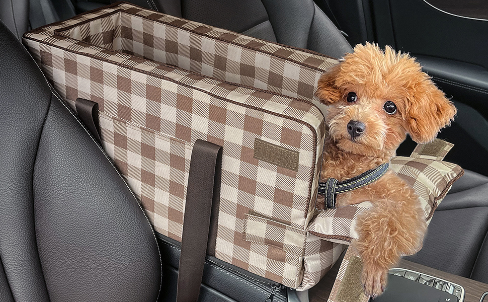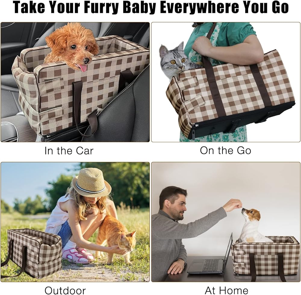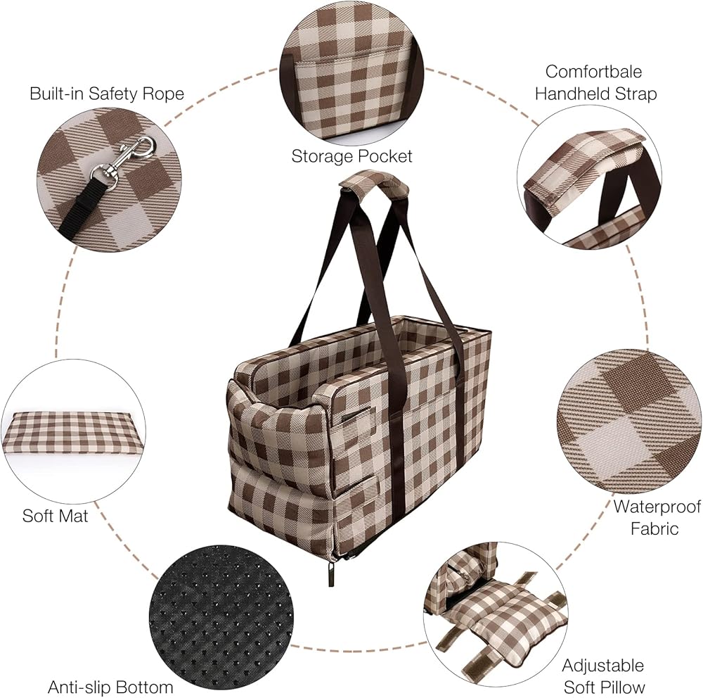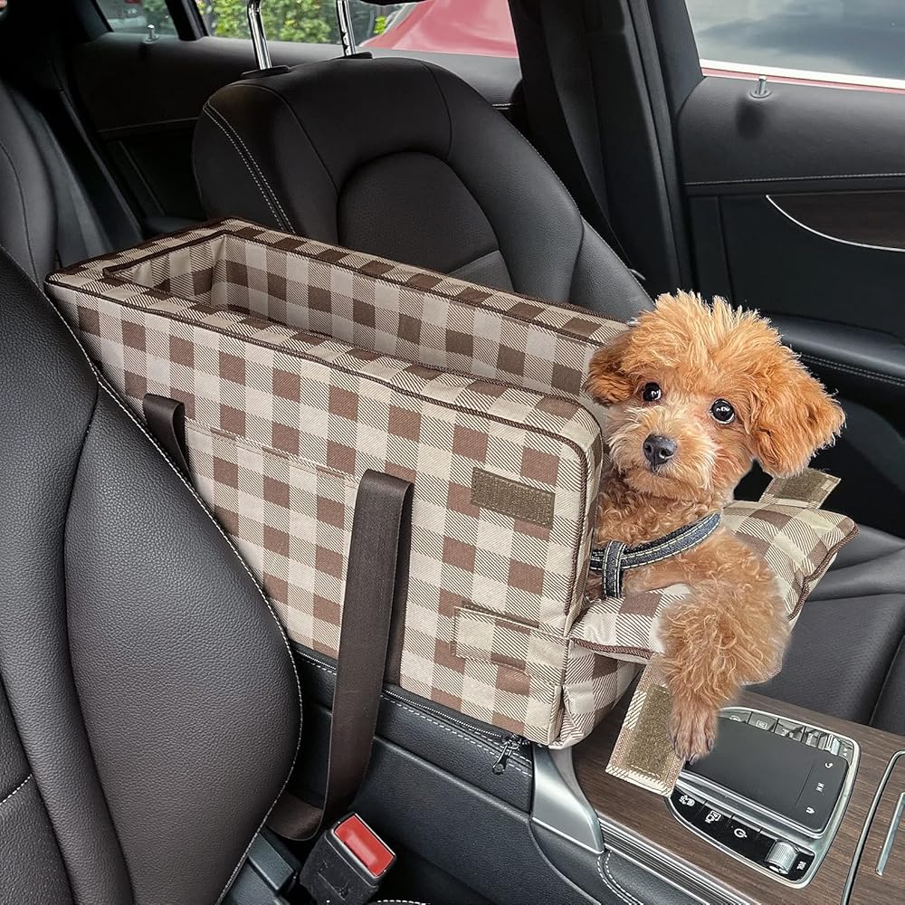 مقعد سيارة للكلاب الصغيرة 5-15 باوند، مقعد سيارة لوحدة التحكم المركزية للحيوانات الاليفة، مقعد سيارة محمول بمسند ذراع للجراء قابل للغسل، شنطة حمل لمقعد السيارة للقطط والكلاب
