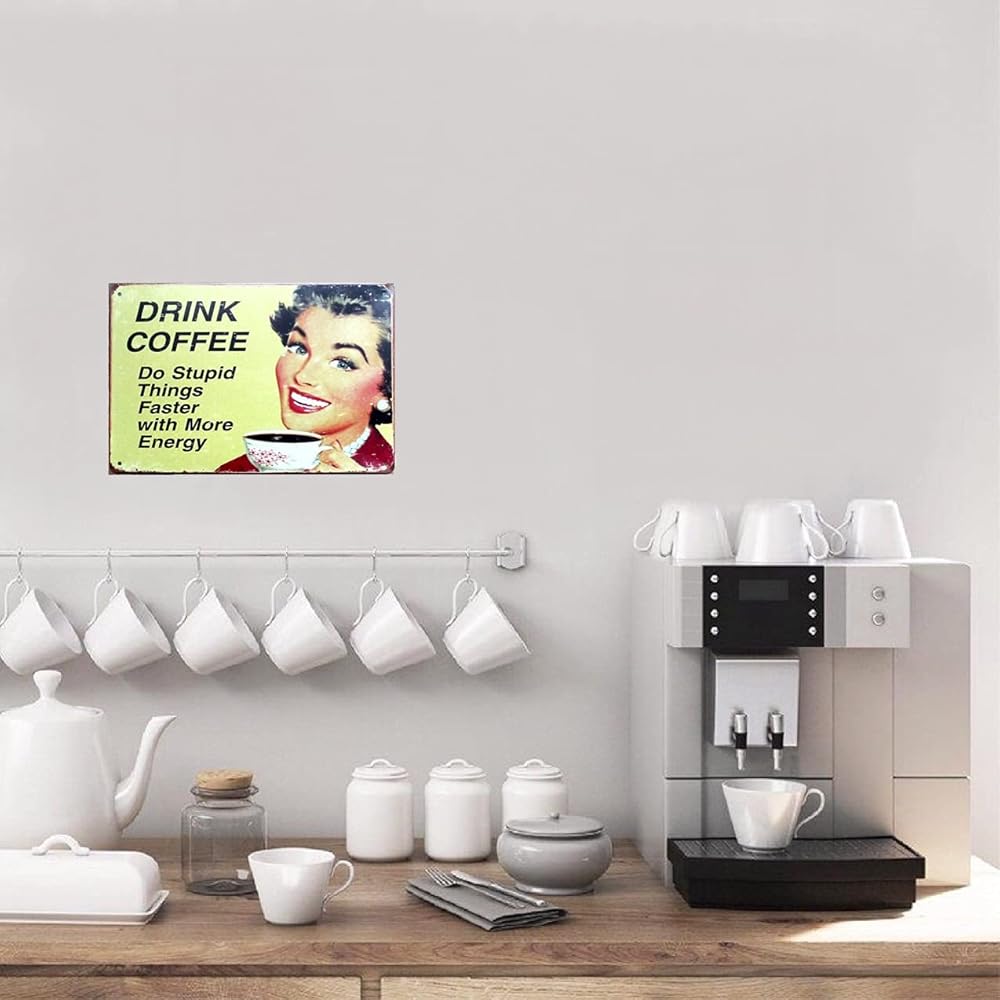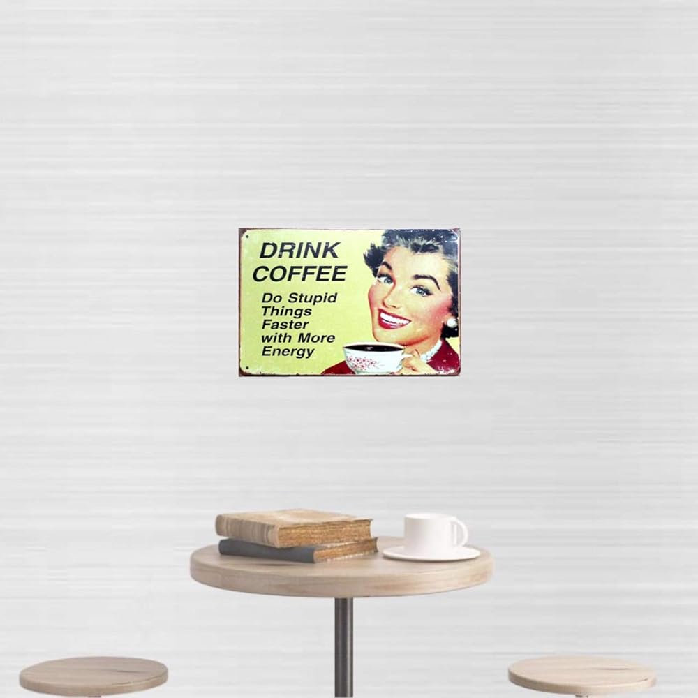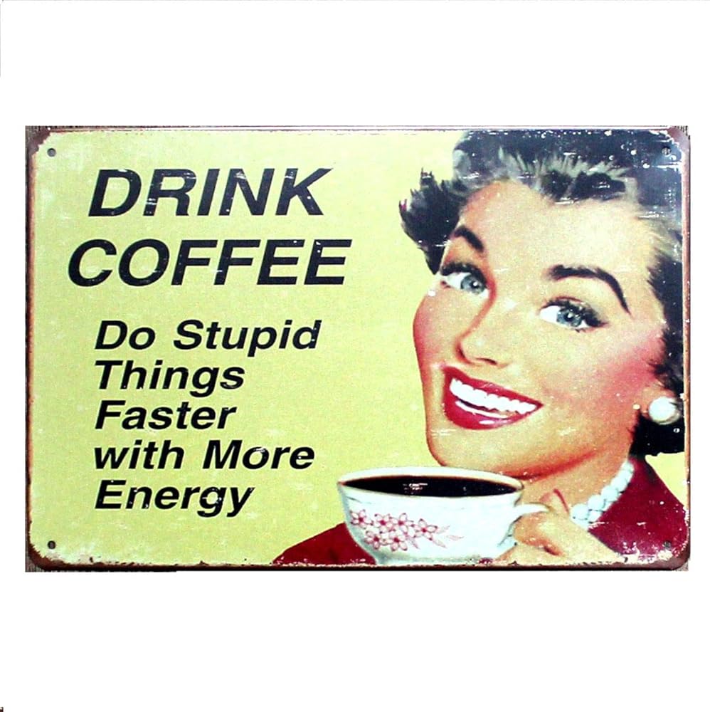 ميتال تين ساين اشرب القهوة افعل أشياء غبية اسرع مع المزيد من الطاقة بار مقهى كراج ديكور حائط ريترو فينتاج 7.87 × 11.8 انش