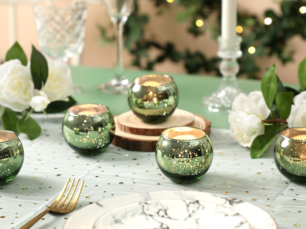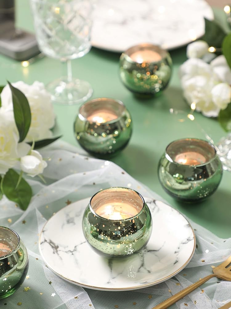 حاملات الشموع الزجاجية الزئبقية: تبدو حاملات الشموع النذرية المصنوعة من الزجاج الزئبقي رائعة في أي مكان. عندما تضاء الشموع، فإنها تضفي جوًا مريحًا على أي منزل، مما يخلق توهجًا مريحًا ورومانسيًا.
