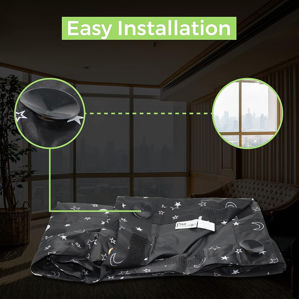 محتويات العبوة: ستارة تعتيم مؤقتة وحقيبة سفر.