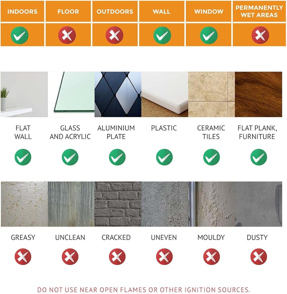 [سهل الاستخدام] - سهل التركيب والإزالة دون ترك أثر. من أجل الاستخدام، ما عليك سوى تقشيره ولصقه على أي سطح نظيف ومستوٍ مثل الجدار أو الأثاث أو كشاشة نافذة، وستكون جاهزًا للانطلاق! يمكن تشذيبه/قصه بسهولة ليناسب المقاس.