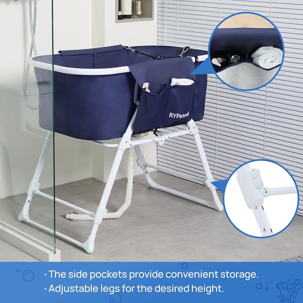 Discover the convenience of at-home pet grooming with the RYPETMIA Foldable Elevated Pet Bathtub. Eliminate the need for regular visits to the groomer and the discomfort of stooping over your home tub or shower. Designed for easy, cost-effective pet care, this bathtub offers a stress-free cleaning experience. Its compact, foldable design makes storage a breeze, transforming bath time into a pleasant bonding experience with your beloved pet.