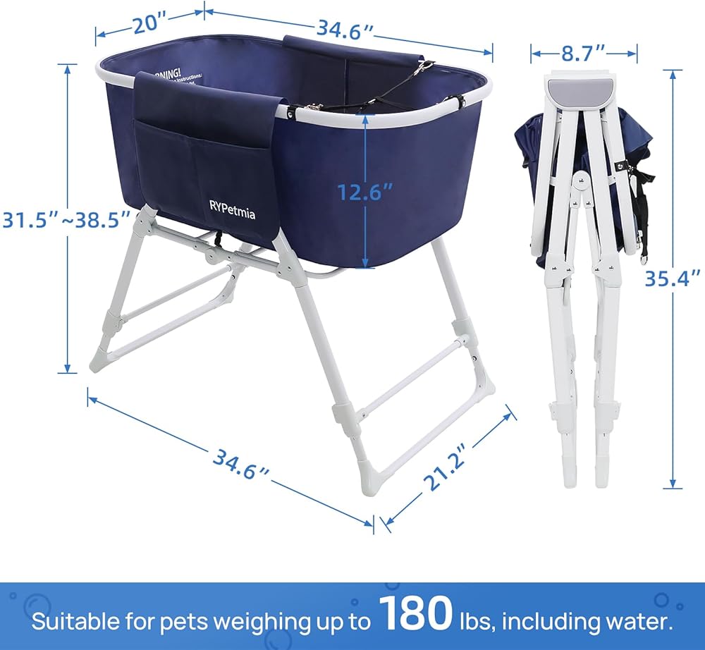 حوض استحمام للكلاب من RYpetmia - ارتفاع قابل للتعديل للاستخدام الداخلي والخارجي، دش الاستحمام والعناية، محطة غسيل محمولة وقابلة للطي للكلاب والقطط، مثالية للحيوانات الأليفة الصغيرة والمتوسطة الحجم (أزرق)