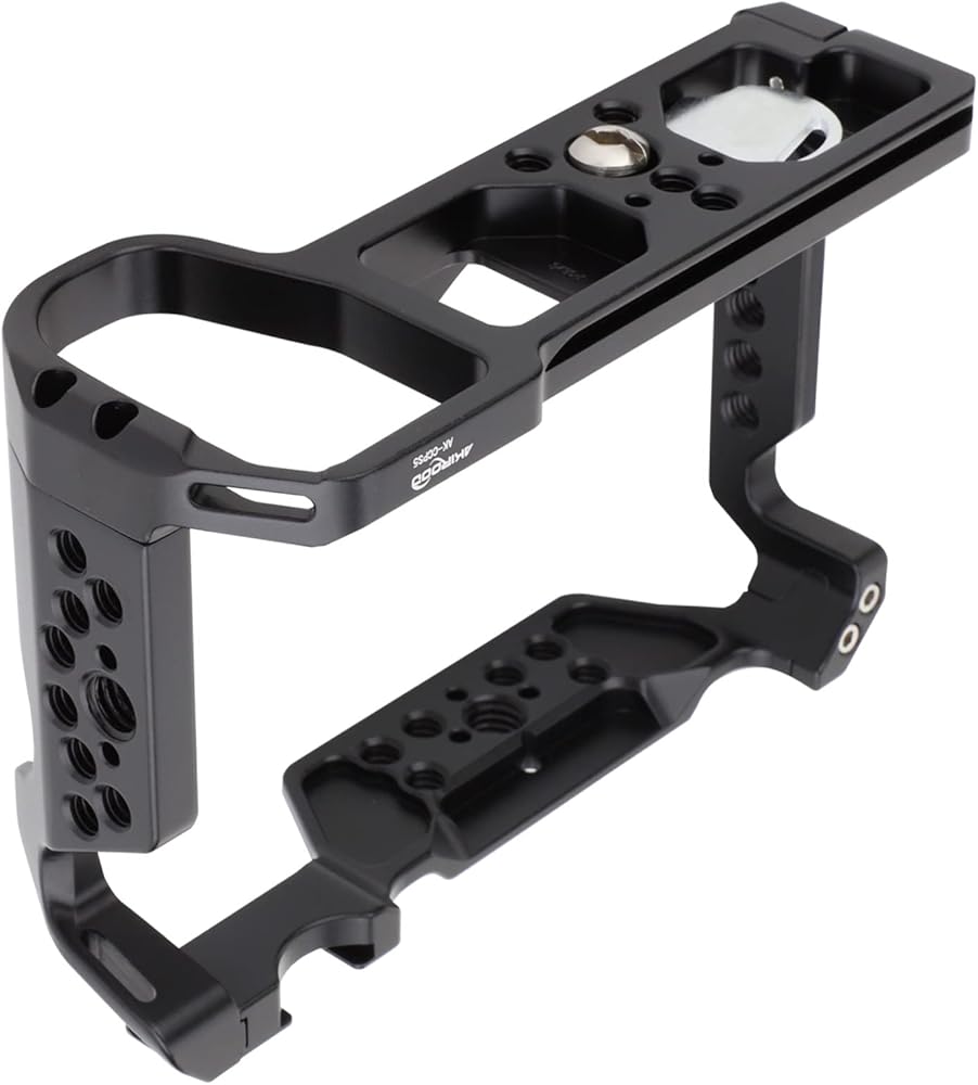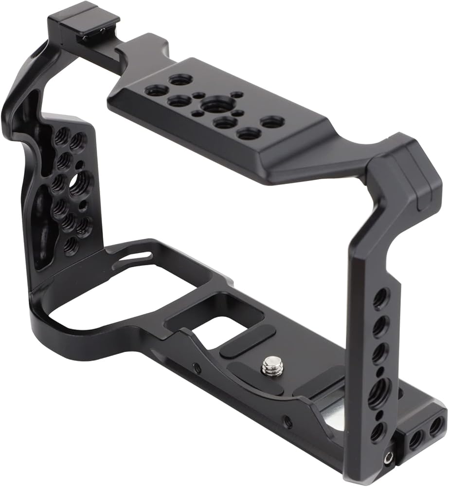 مقبض علوي للكاميرا: مقبض علوي مناسب للتصوير باليد مرفق بالقفص. تسمح لك فتحة التبريد المدمجة وفتحات البراغي 1/4 انش و3/8 انش بتوصيل الميكروفونات وقواعد اي في اف وغيرها.