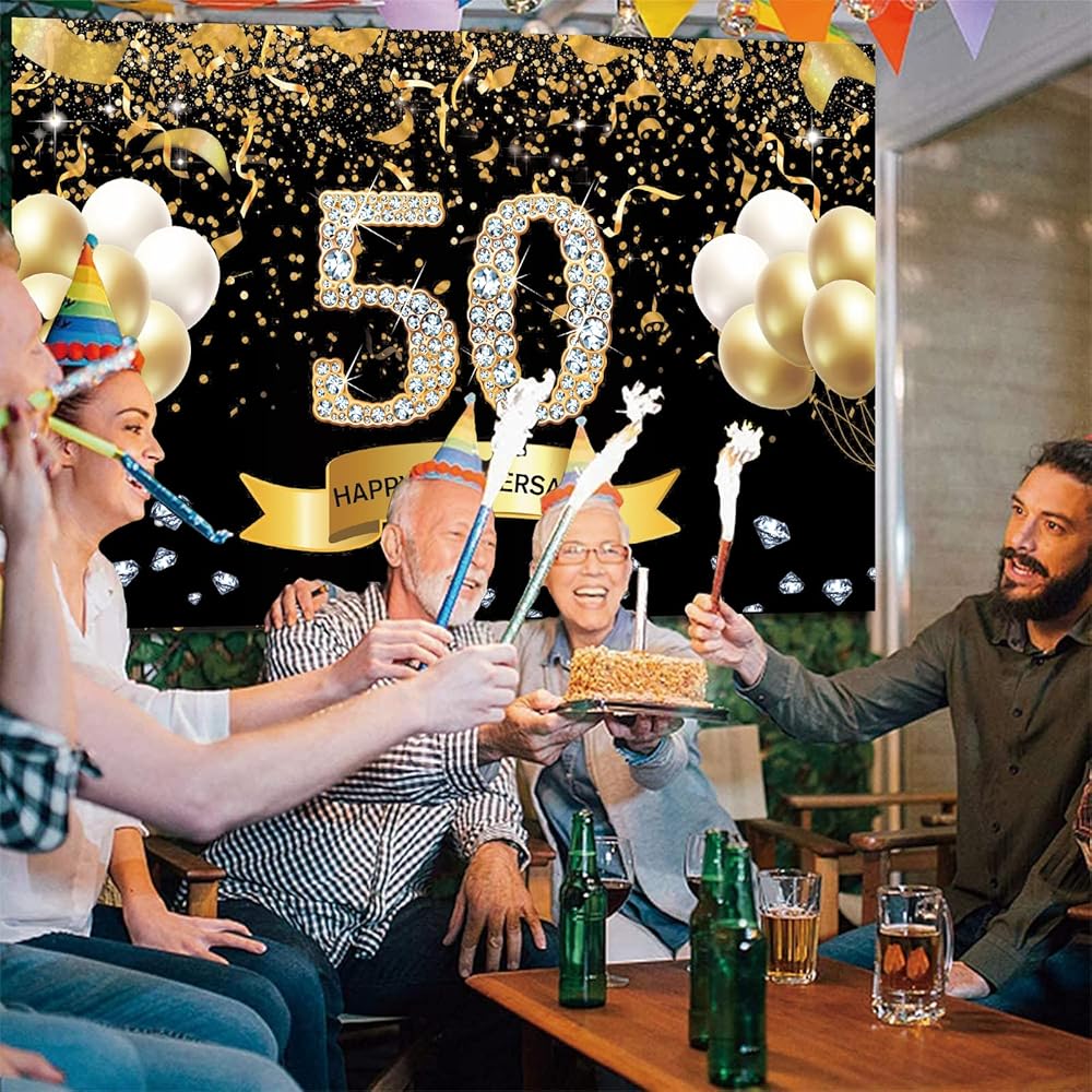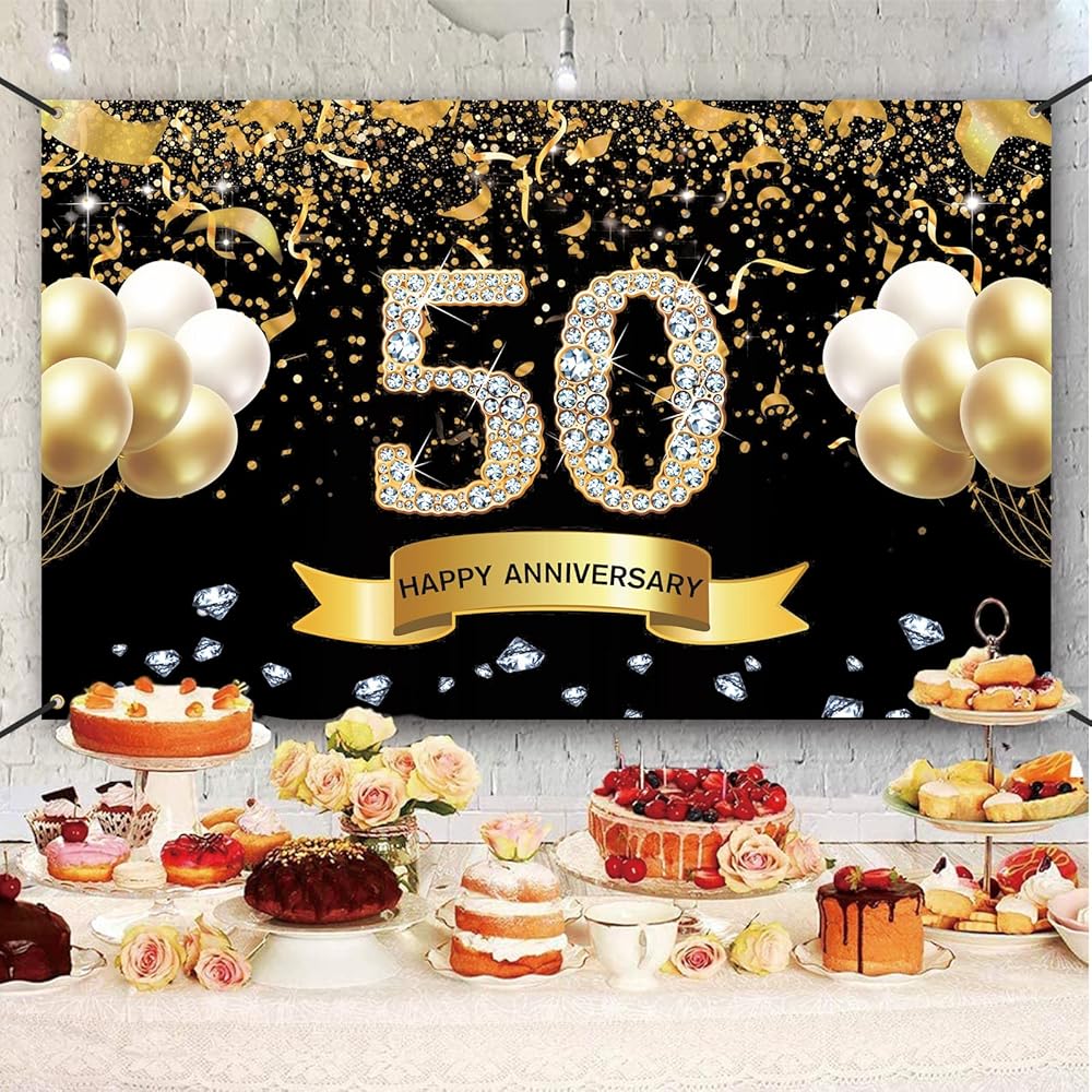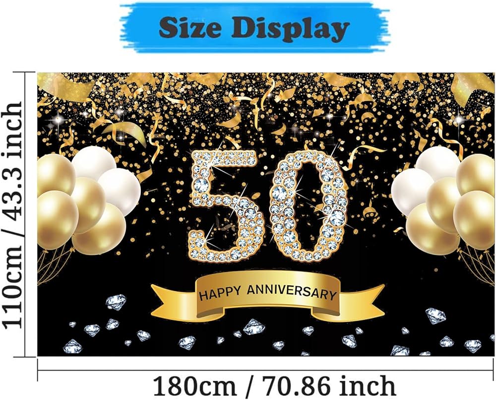 • 🎂【خلفية مثالية لعيد الميلاد】تعتمد خلفية الذكرى السنوية على اللونين الأسود والذهبي كلون موضوعي، وهو مناسب جدًا للرجال والنساء ذوي الذوق الرفيع. استخدمه لتزيين حفل الذكرى السنوية الخمسين كخلفية! اصنع وقتًا ممتعًا لها ولعائلتك!