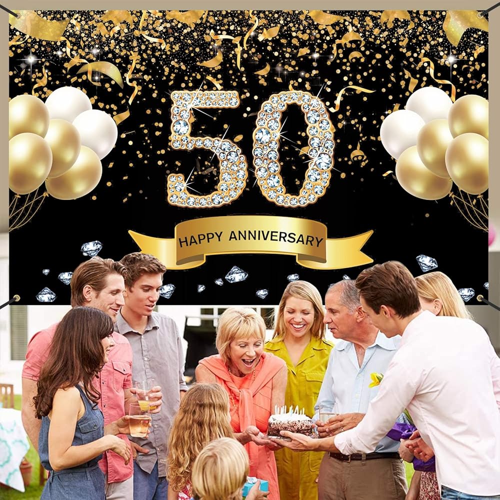زخارف الذكرى السنوية الخمسين للزفاف من Trgowaul، خلفية لافتة للذكرى السنوية الخمسين من الذهب الأسود، لوازم حفلات الذكرى السنوية الخمسين السعيدة، ديكورات حفلات خلفية التصوير الفوتوغرافي