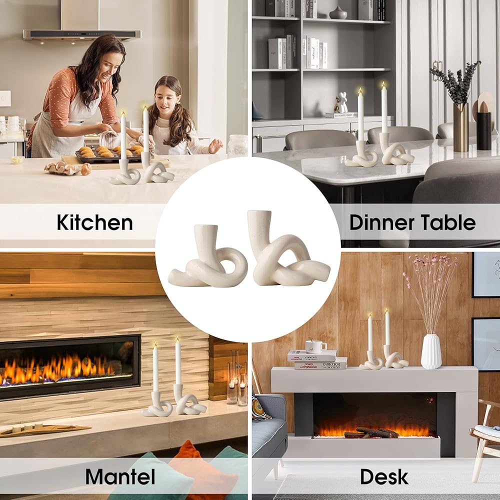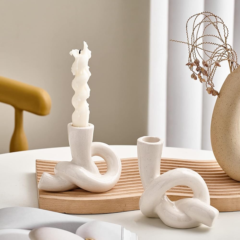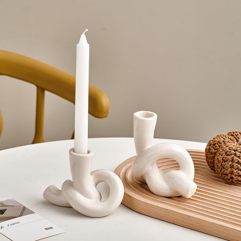 مجموعة حوامل الشموع البيضاء XGZY: قطعتان من حامل الشموع الحديث، شمعدانات سيراميك فريدة من نوعها لغرفة المعيشة، حامل تلفزيون، حامل شموع للمطبخ، غرفة الطعام، حامل شموع مستدقة لزينة عيد الميلاد