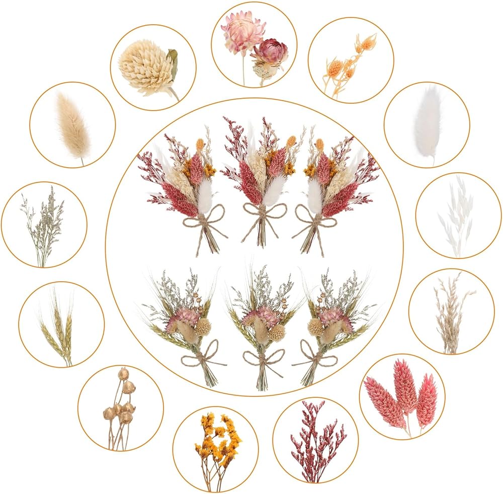 Versatile Decoration - With a variety of flowers including wheat, bunny tail grass, reed grass, and other brightly colored flowers, our 6pcs bouquet is perfect for DIY crafts, floral arrangements, table decorations, weddings, greeting cards, and even candle embellishments