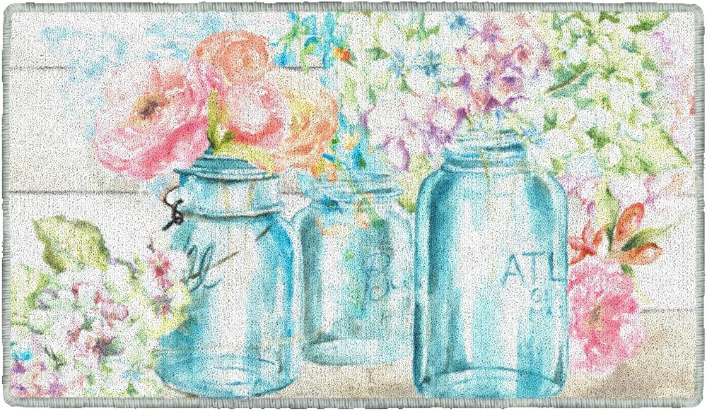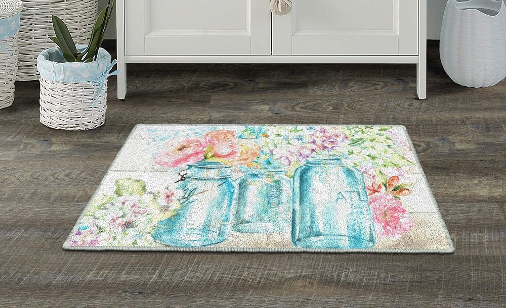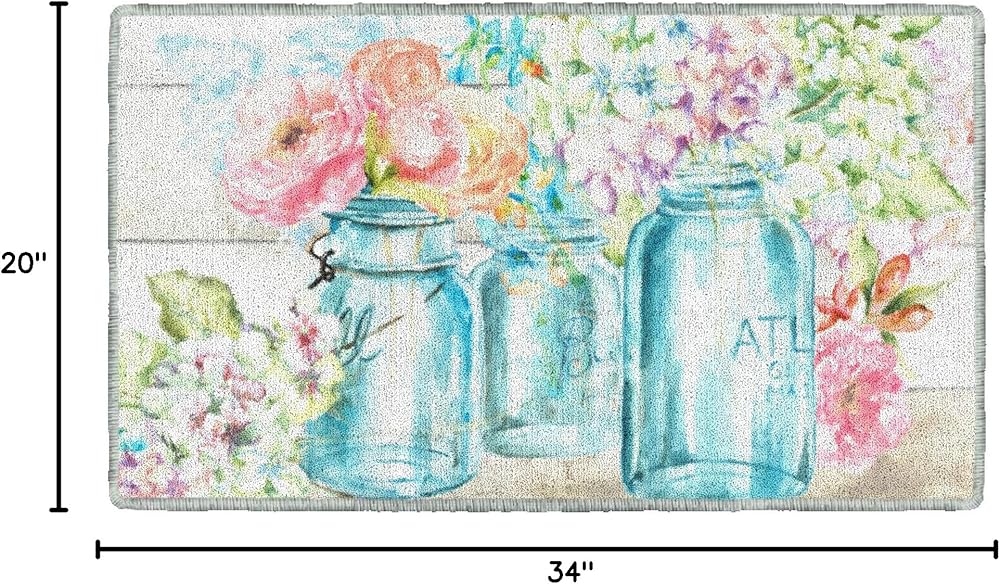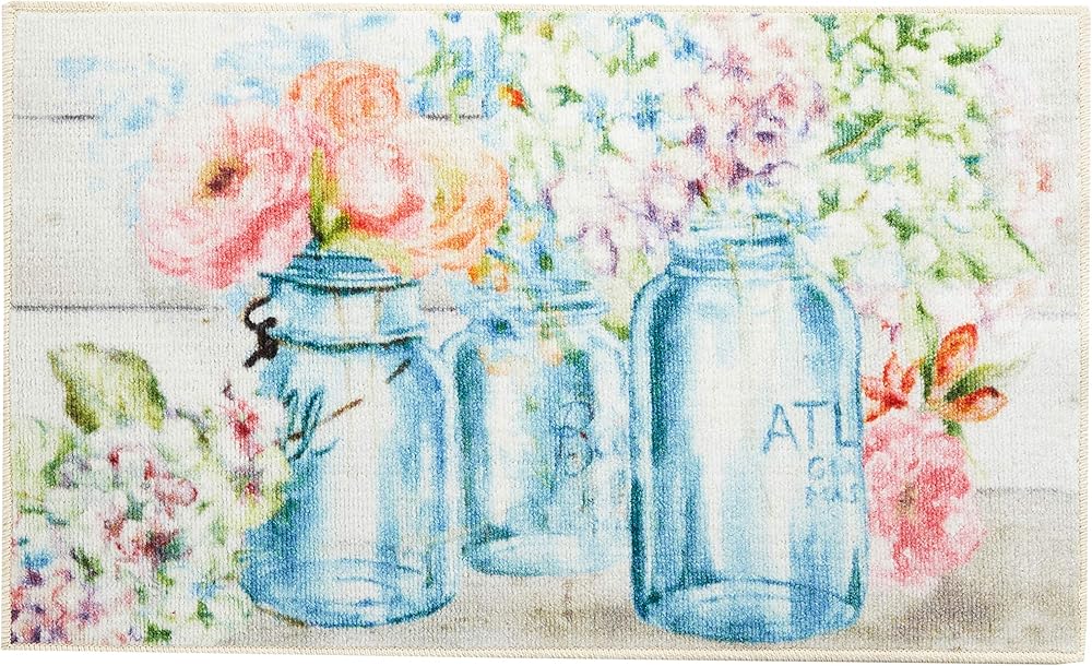 ترتيب زهور ملونة في برطمانات البناء الزرقاء تحول بسهولة أي مطبخ أو مدخل أو منطقة مكتب أو غرفة نوم. هذه السجادة متعددة الاستخدامات أنيقة وجذابة. ظلال زاهية من الوردي والأرجواني والأخضر والأزرق تخلق شعورًا بالبهجة. مع العمل الفني بواسطة Tre Sorelle Studios، فإن هذه اللوحة الجميلة هي حقًا عمل فني للأرضيات الخاصة بك. مطبوع على كومة من النايلون المقصوص بوزن 850 جم مع ظهر غير منزلق من اللاتكس، لا حاجة إلى وسادة سجاد إضافية. هذا البساط ذو الوبر المنخفض يخلق مظهرًا أنيقًا وعصريًا. تتميز هذه السجادة بأنها متينة ويمكن غسلها لسهولة العناية. صُنع في الولايات المتحدة الأمريكية باستخدام التكنولوجيا الأكثر تقدمًا في تصنيع السجاد. تقوم هذه الشركة المملوكة لعائلة بابتكار وتصنيع منسوجات عالية الجودة لأكثر من 75 عامًا.