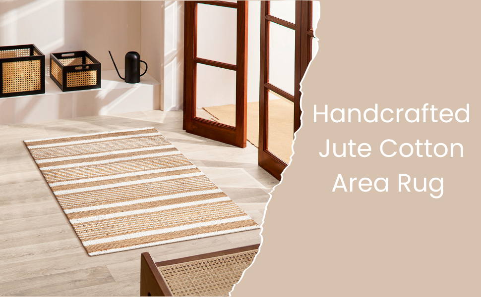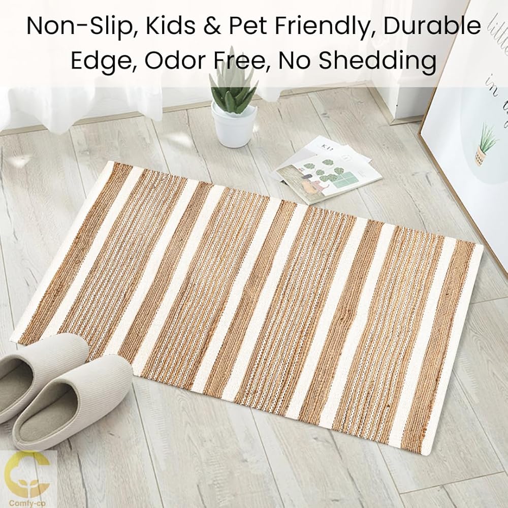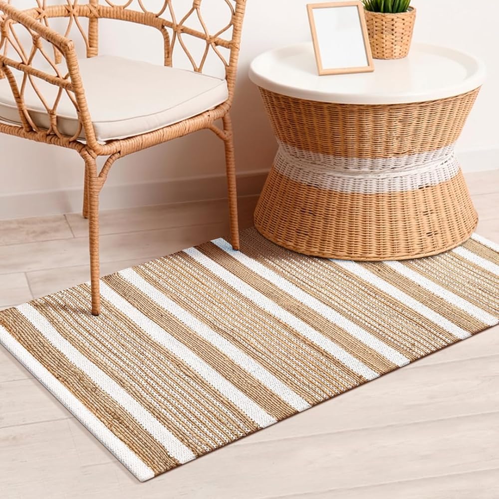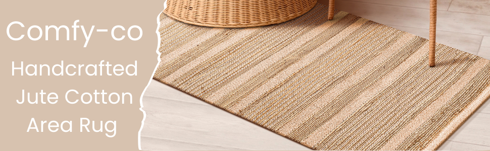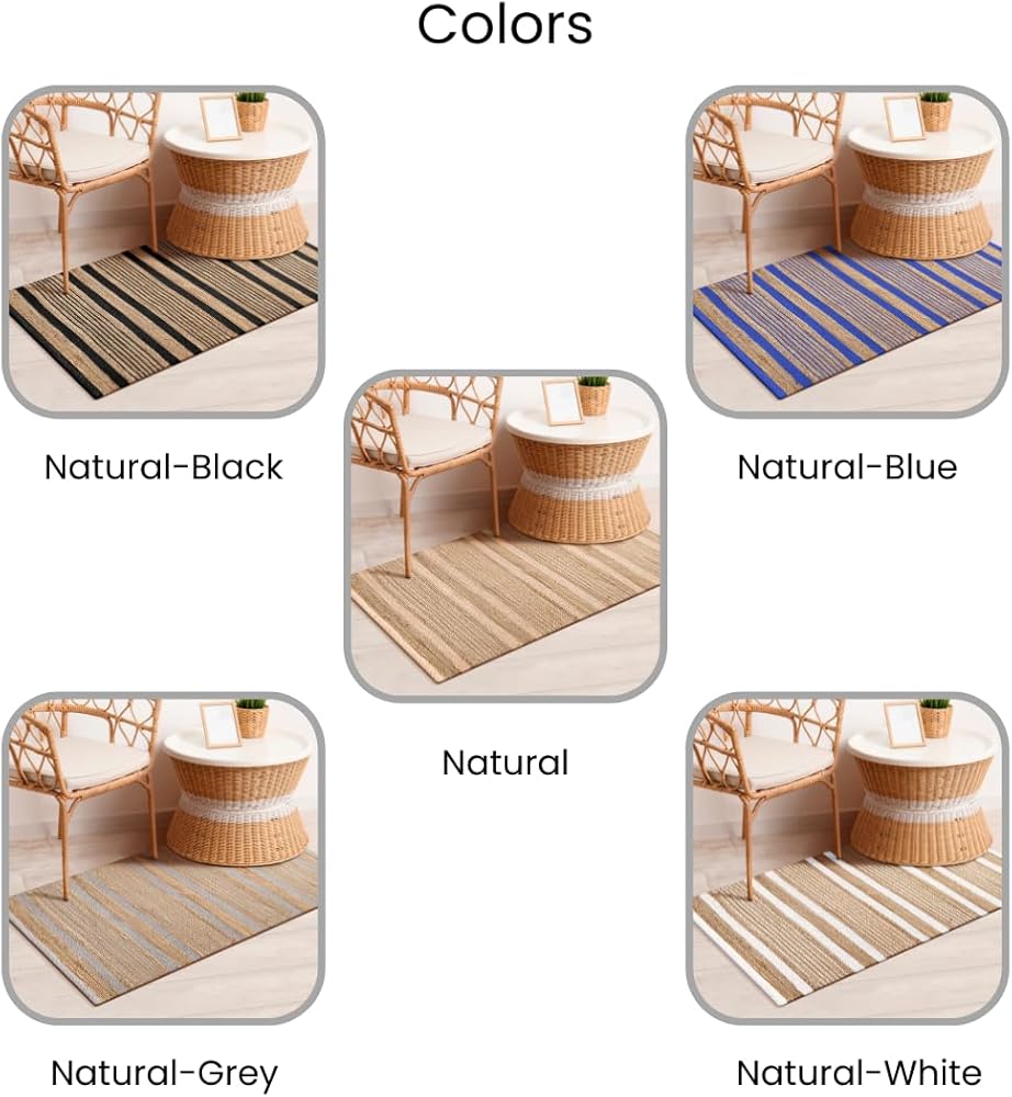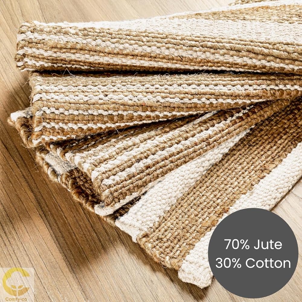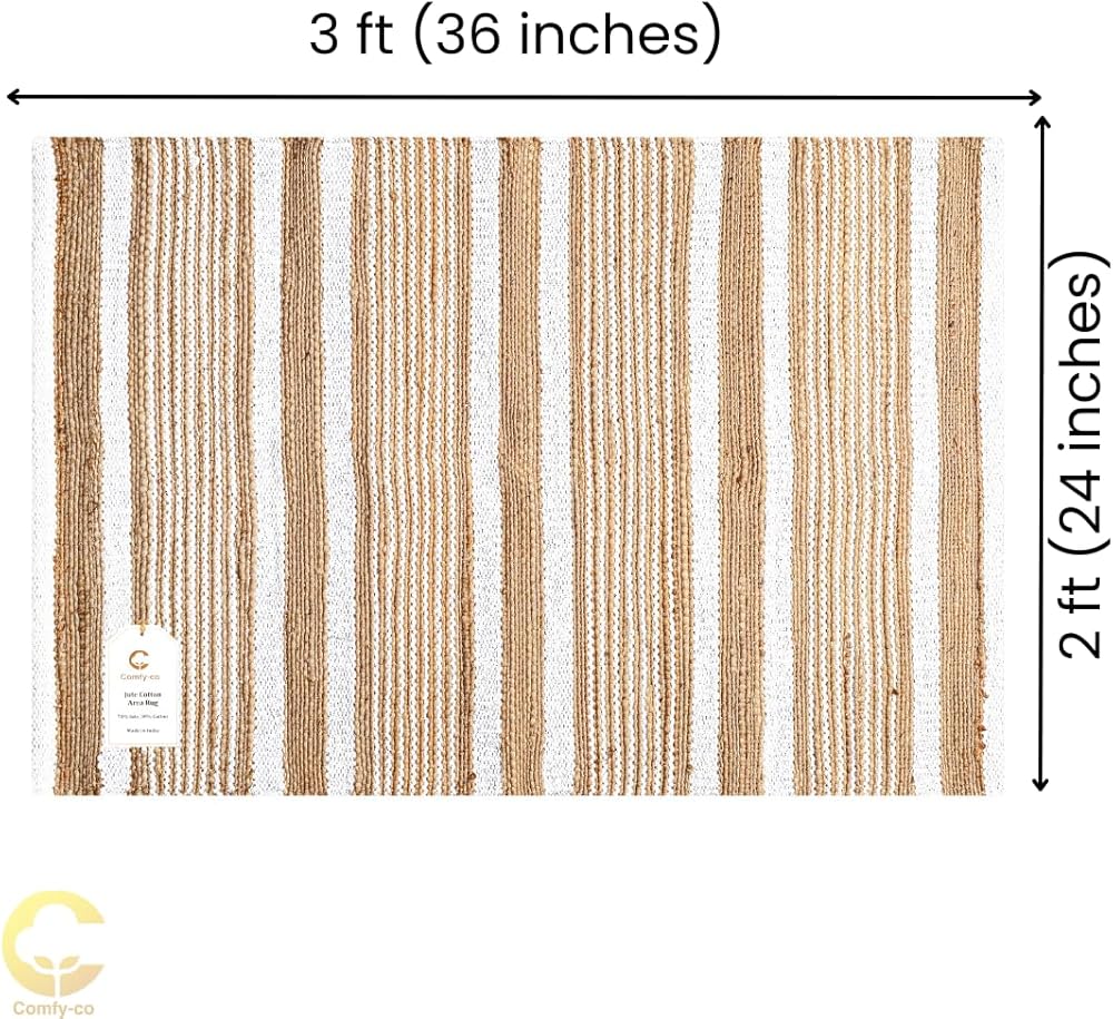 سجادة منطقة 2x3 قدم: سجادة منطقة مصنوعة يدويًا من الجوت (70%) والقطن (30%) - شديدة التحمل ومتينة ومتعددة الاستخدامات