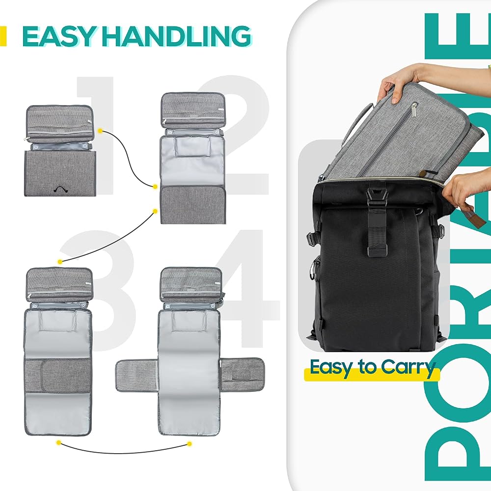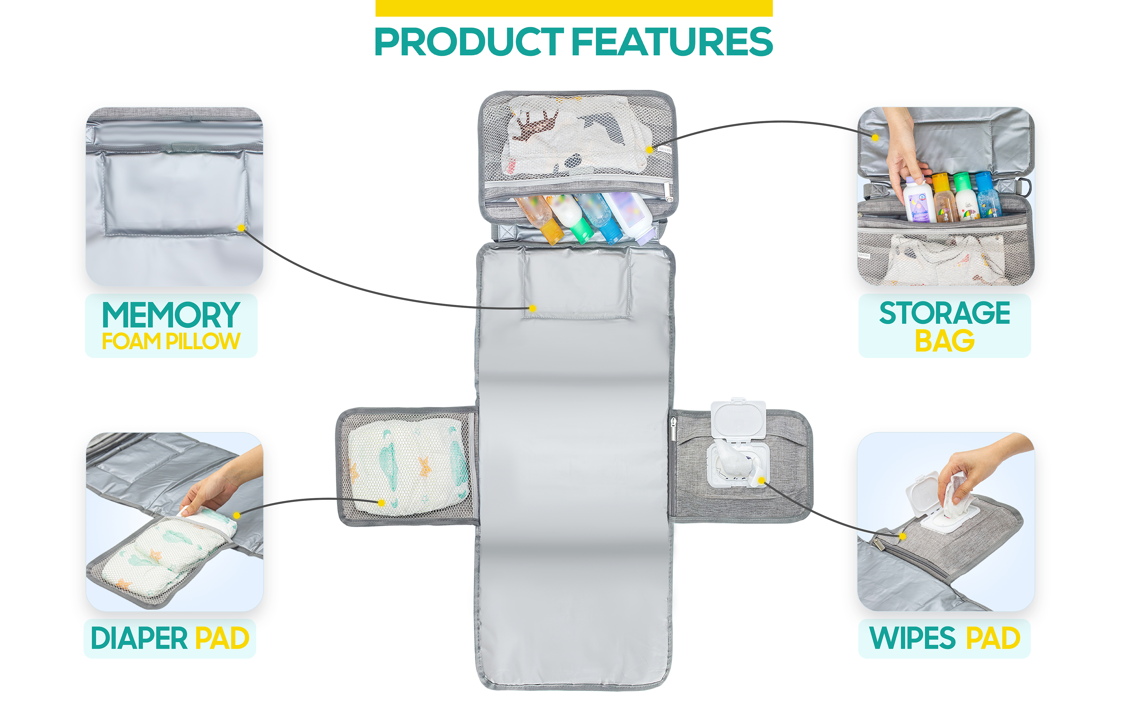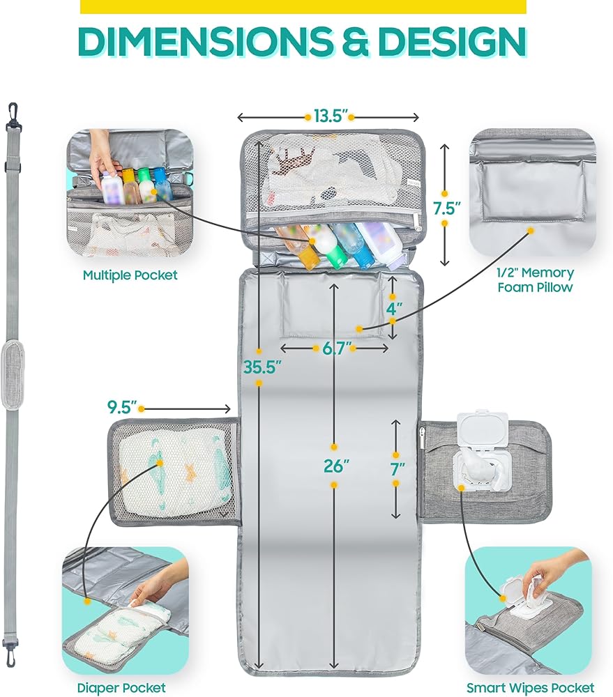 ✅ محطة تغيير محمولة ➤ يضمن التصميم الذكي لمنصات تغيير الحفاضات المحمولة لدينا تغيير الحفاضات بدون متاعب أثناء التنقل. مصممة لتناسب حقيبة الحفاضات أو يمكن ربطها بسهولة بعربة الأطفال والحقيبة.