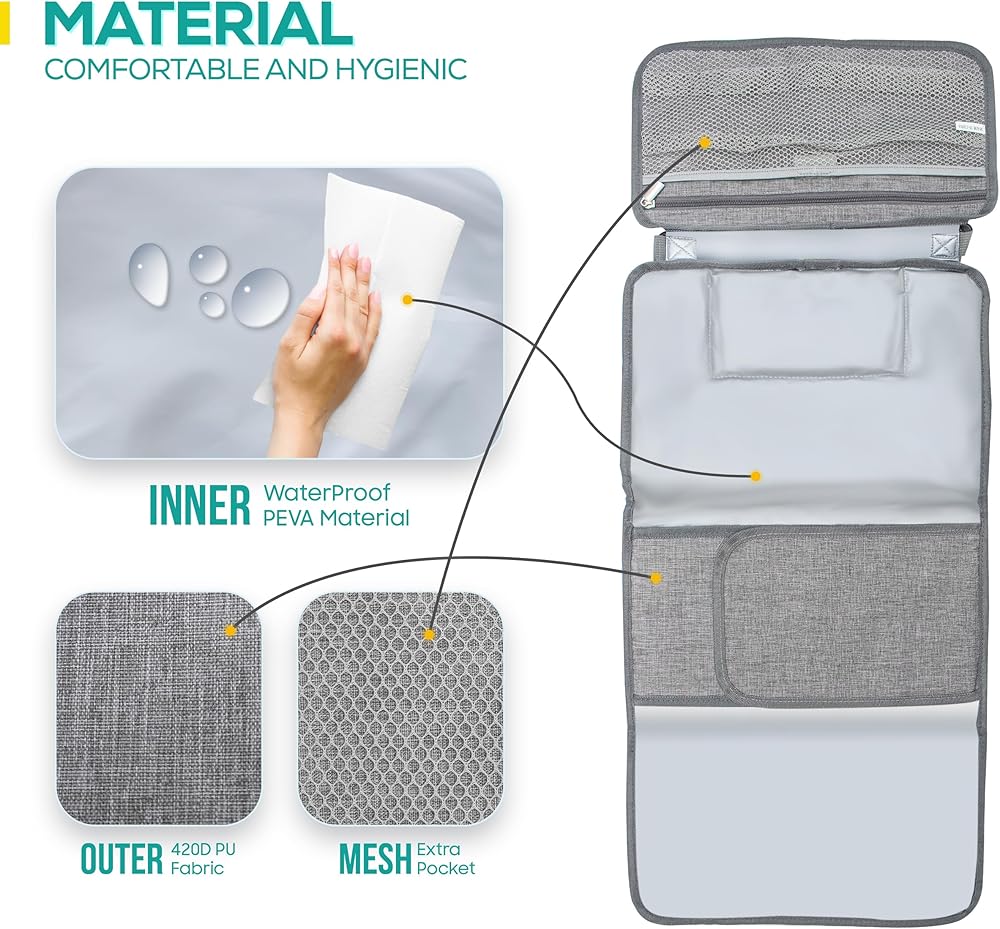 ✅ جودة ممتازة ➤ وسادة تغيير الحفاضات المحمولة للطفل مصنوعة من مادة البولي فينيل الإيثيلين والبوليستر المقاومة للماء والخالية من الروائح لضمان منطقة صحية لطفلك. بالإضافة إلى ذلك، يمكن تنظيف السطح يدويًا بسهولة.