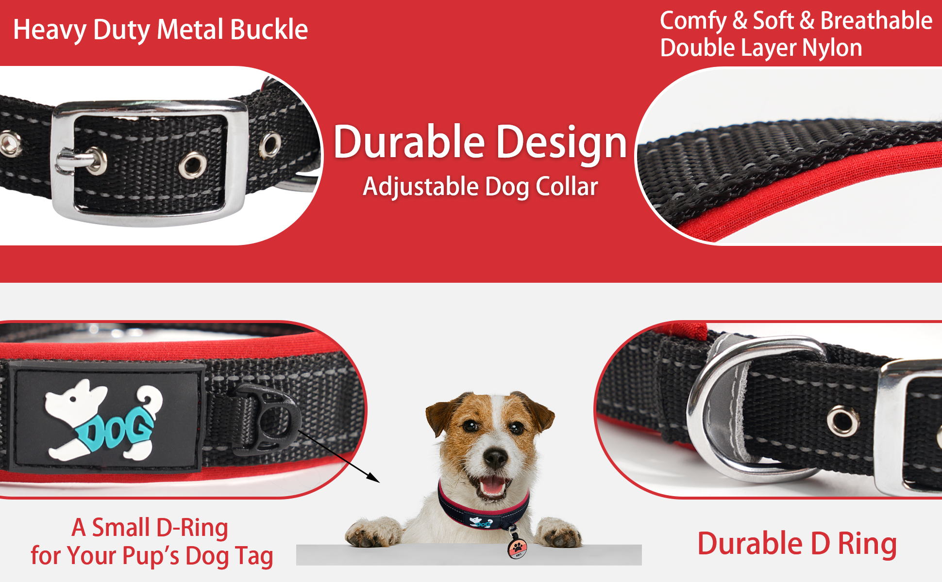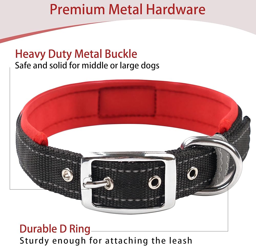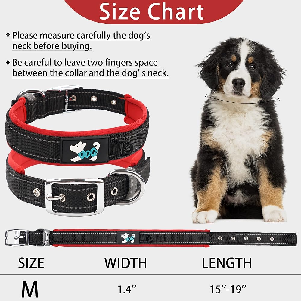 Adjustable Size - Our soft dog collar has a total length of 22 inches. M size fits 15-19 " neck; Our reflective nylon dog collar has a double-layer structure, suitable for energetic, strong and naughty dogs. (Please measure the neck of the dog and leave two fingers free before ordering, and then refer to the size chart to purchase.