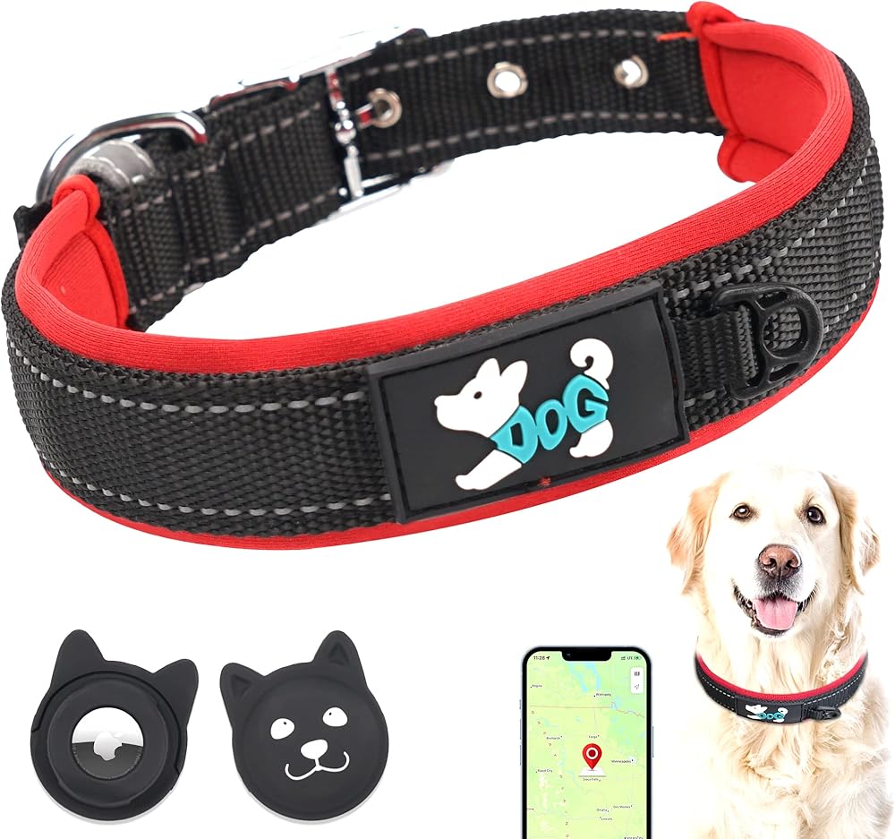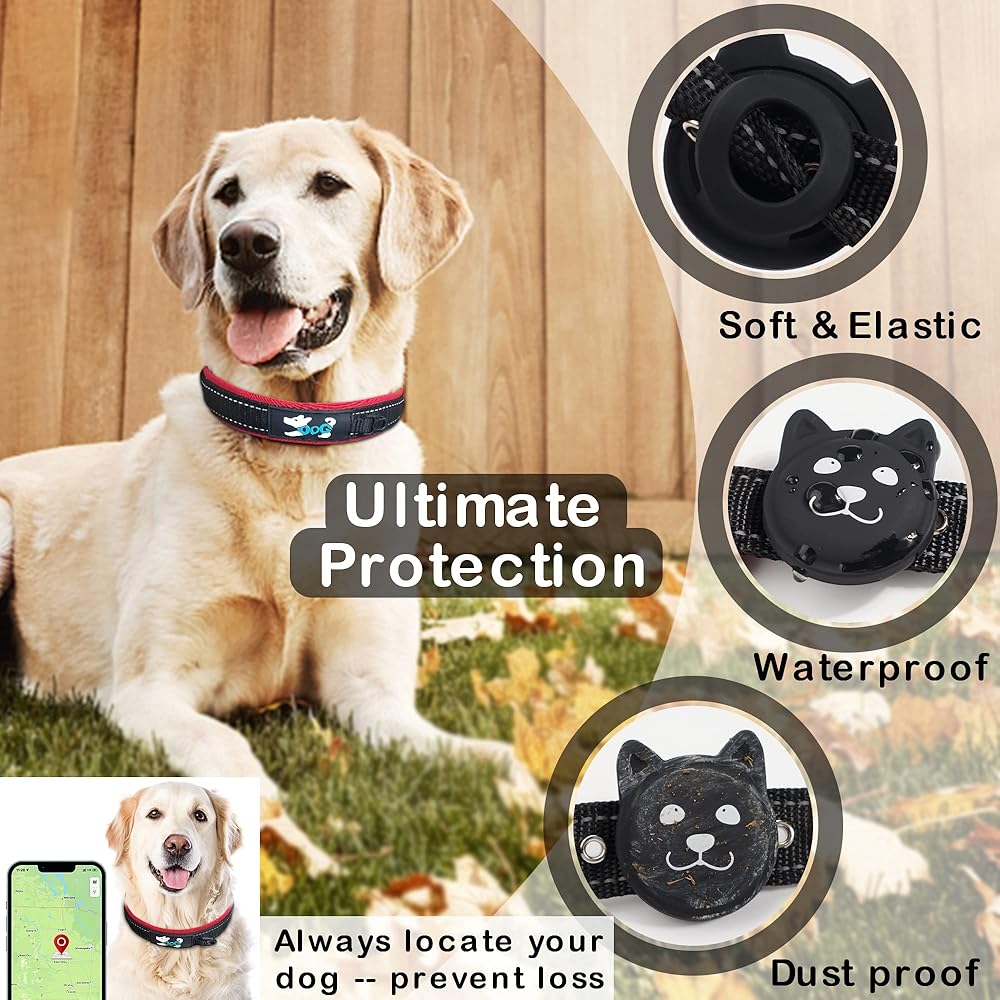 Apple Airtag Dog Collar - You'll get a medium dog collar with cute airtag holder. The protective airtag case is highly wrapped to prevent Airtag from falling. Our apple airtag collar is food grade silicone, safe and durable, which prevents airtag from dirt, dust and water. Use airtag mobile phone to track, and no longer worry about dogs getting lost. (Airtag is NOT INCLUDED)