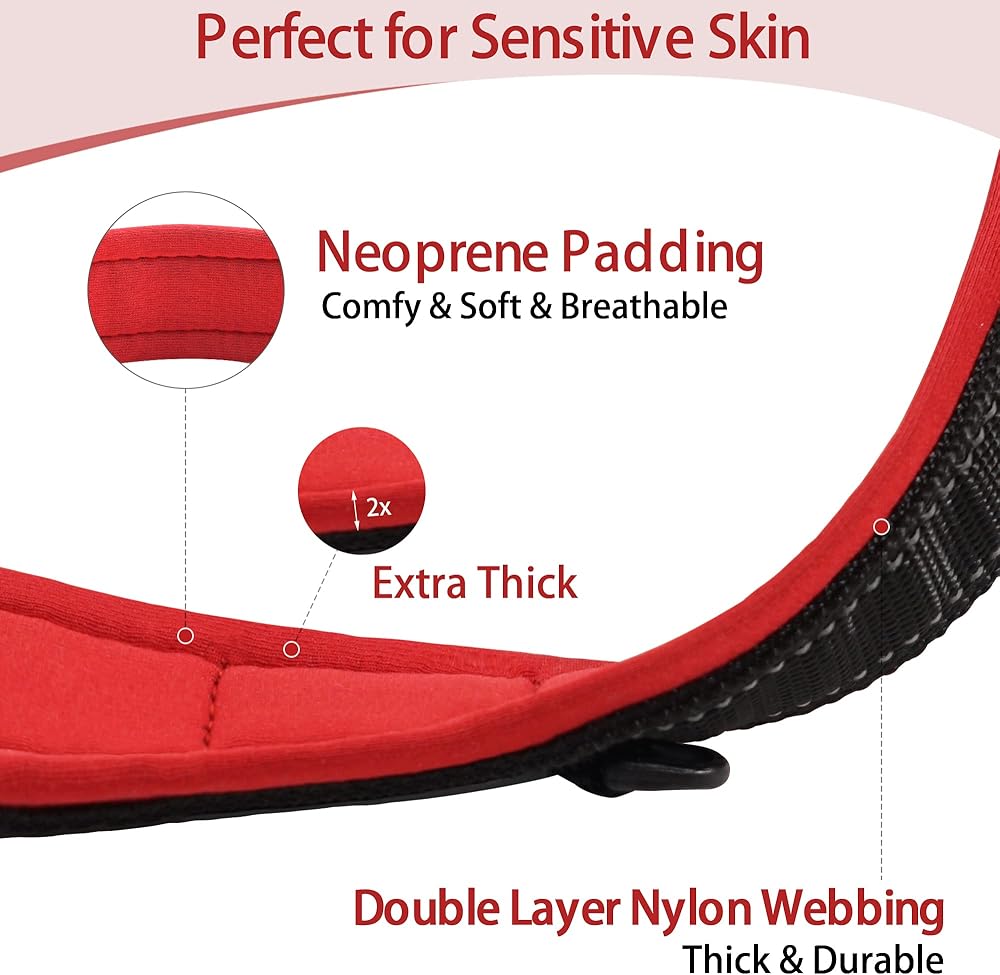 Reflective Sching Design - Our comfy adjustable no slip dog collar has two 360 reflective sches, stylish, special and cute, which can ensure the safety of your dog in the dark environment, and is very suitable for running, training or walking your dog at night.