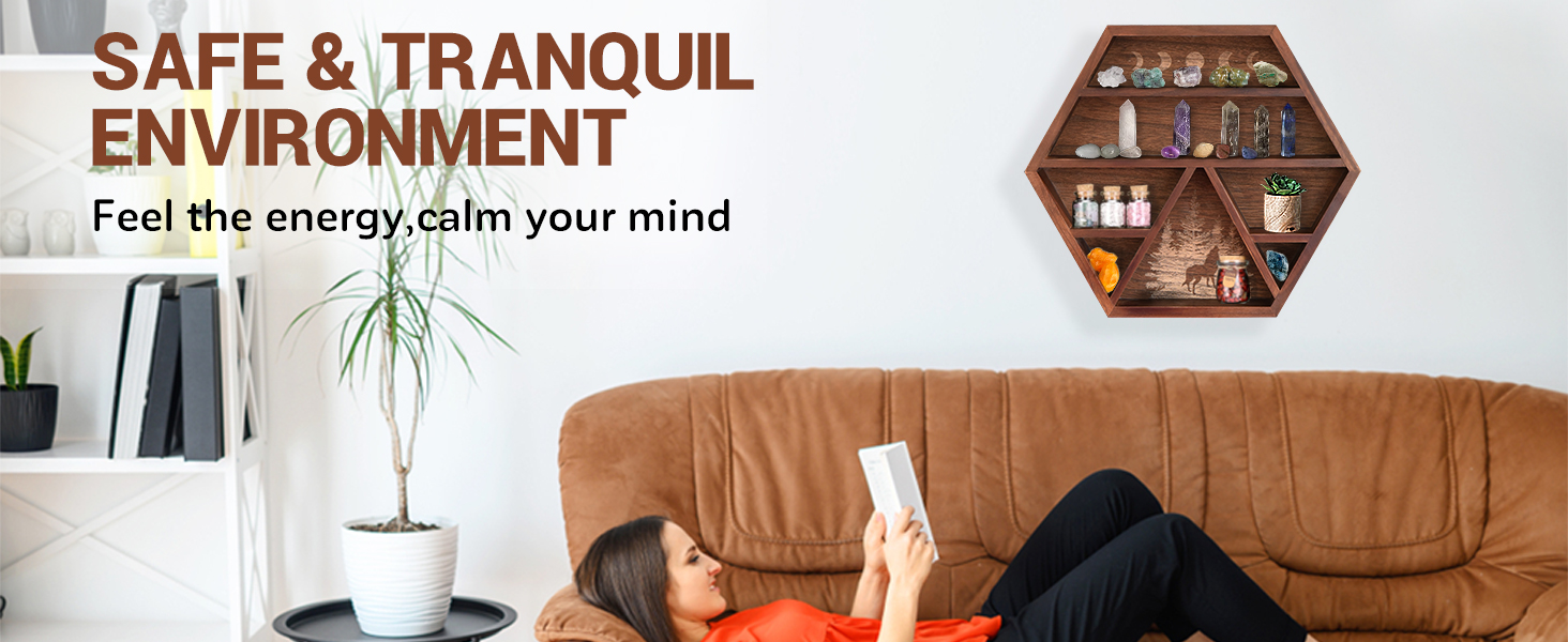 • ✨ديكور حائط كريستالي قوي: مصنوع من خشب الصنوبر الصلب وبحرفية دقيقة، هذا الرف المخصص للكريستالات لن يتشقق أو يتشقق أو يلتوي. سوف تستمتع باستخدامه لسنوات عديدة قادمة!