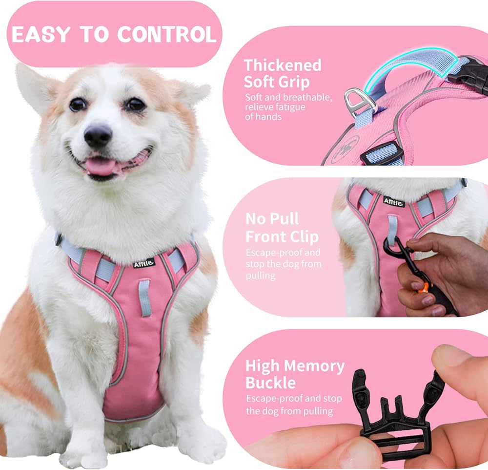 ايتل سرج متين مقاوم للماء للكلاب - مستلزمات الحيوانات الاليفة، سرج كلاب قابل للتعديل للمغامرات الخارجية مع شرائط عاكسة ومقبض ناعم سهل التحكم للكلاب الكبيرة والكبيرة جدًا، لون زهري مقاس L