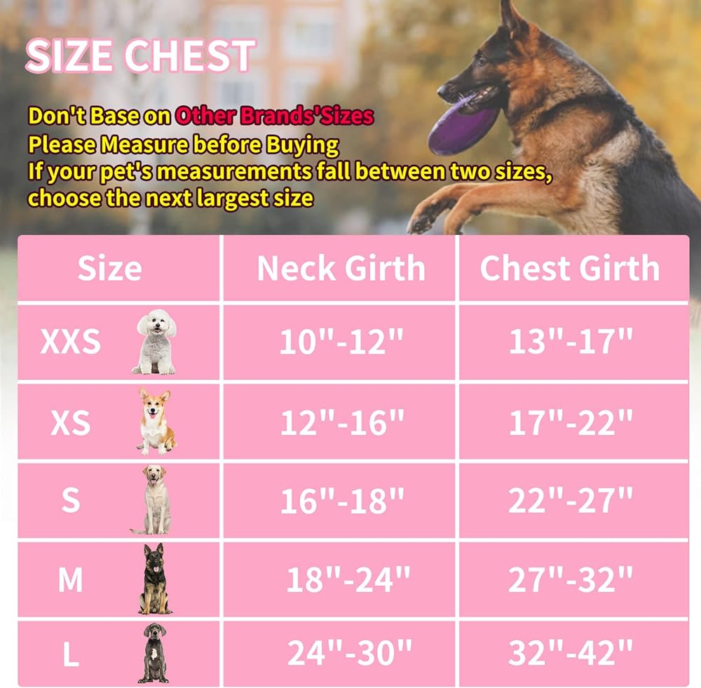 تنبيه - يرجى قياس محيط صدر حيوانك الأليف (الجزء الكامل) ومحيط الرقبة قبل الشراء. لا تعتمد على مقاسات العلامات التجارية الأخرى. هل يمكنك الرجوع إلى دليل المقاسات وجدول المقاسات الخاص بنا للحصول على أفضل مقاس. إذا كانت لديك أي مشكلة مع منتجاتنا أو خدماتنا، فيرجى الاتصال بنا. نقدم استرداد الأموال لمدة 30 يومًا وضمان لمدة عام. نحن على يقين من أن صديقك المكسو بالفراء سيحبها.