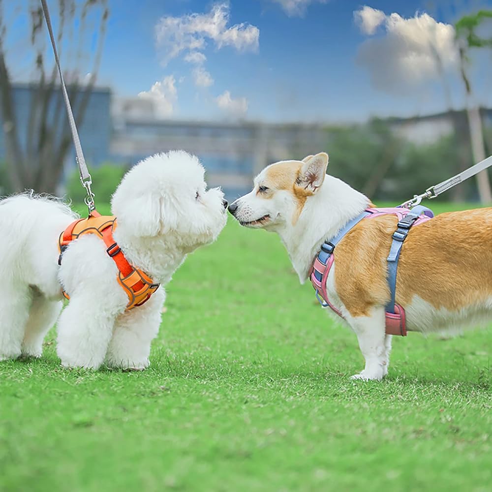 السلامة والتحكم - يتميز سرج الأمان الخاص بنا بنقطتي ربط للزمام لتمشية الكلاب بأمان - مشبك أمامي واحد للتحكم بدون شد أو تدريب الكلاب، والآخر مشبك خلفي للمشي أو الركض بشكل غير رسمي. وفي الوقت نفسه، ستحب هذا المقبض الموجود على الظهر، فهو مفيد في التحكم في الكلاب بالقرب منك قليلاً عندما تحاول الاندفاع في شيء ما. كما أنها مريحة لمساعدة الكلاب في السيارة.