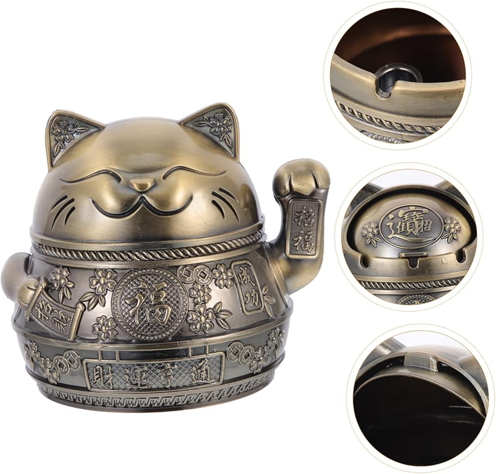 حاويات المكتب: منفضة سجائر بتصميم قطة محظوظة: منفضة سجائر بتصميم قطة محظوظة بدون غطاء للاستخدام الخارجي والداخلي والمنزل والمكتب، منفضة سجائر كرتونية لتزيين السيارة والمنزل والمكتب