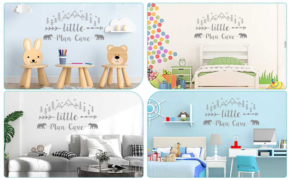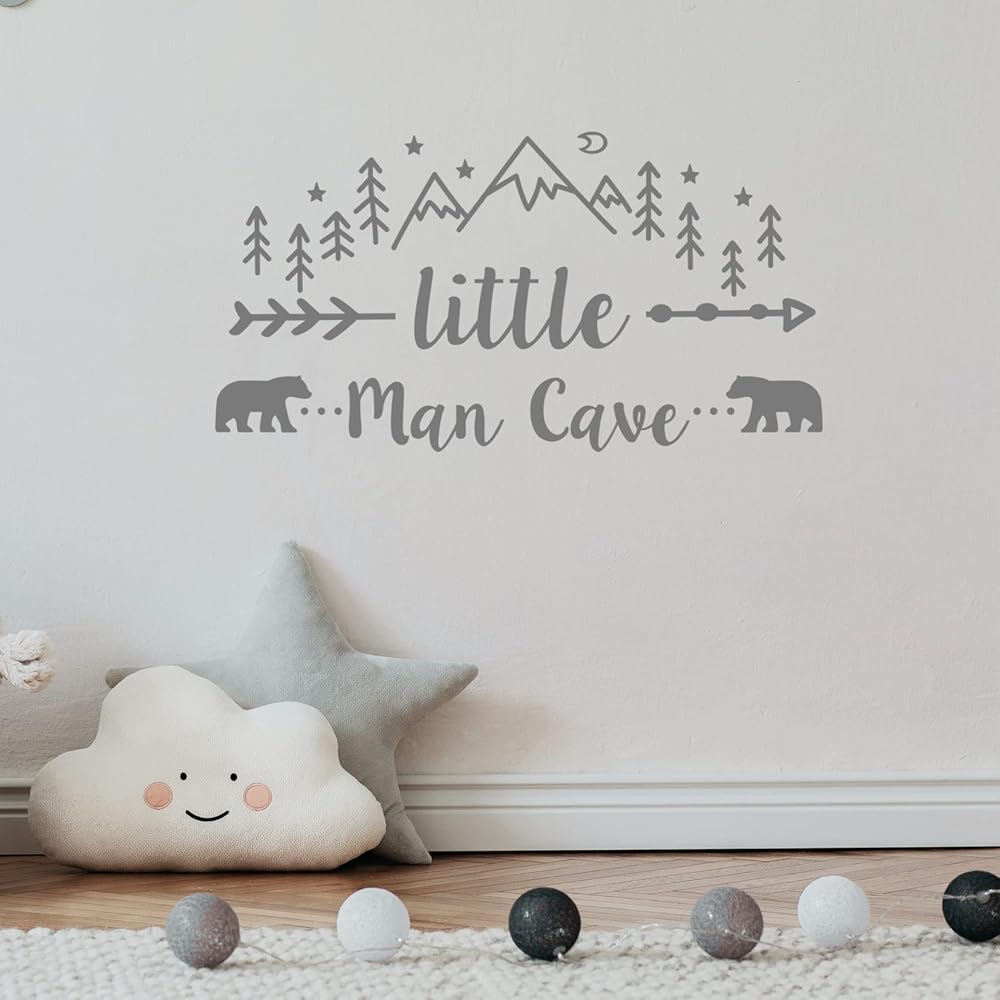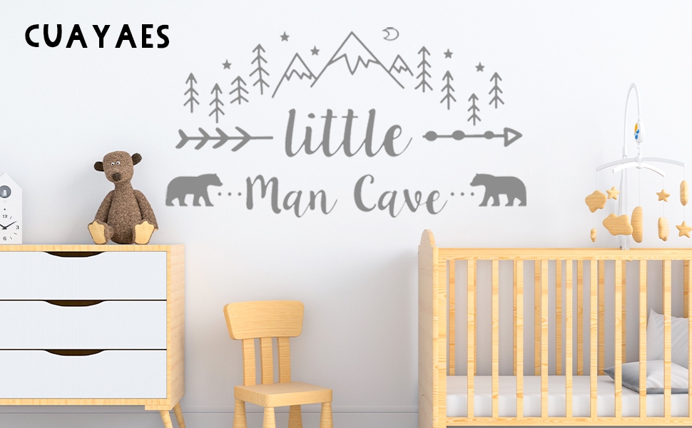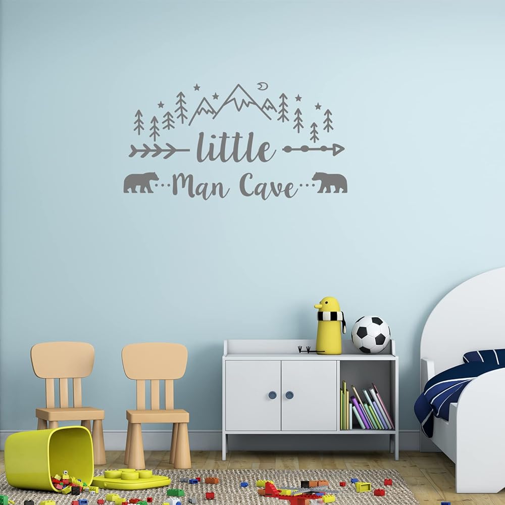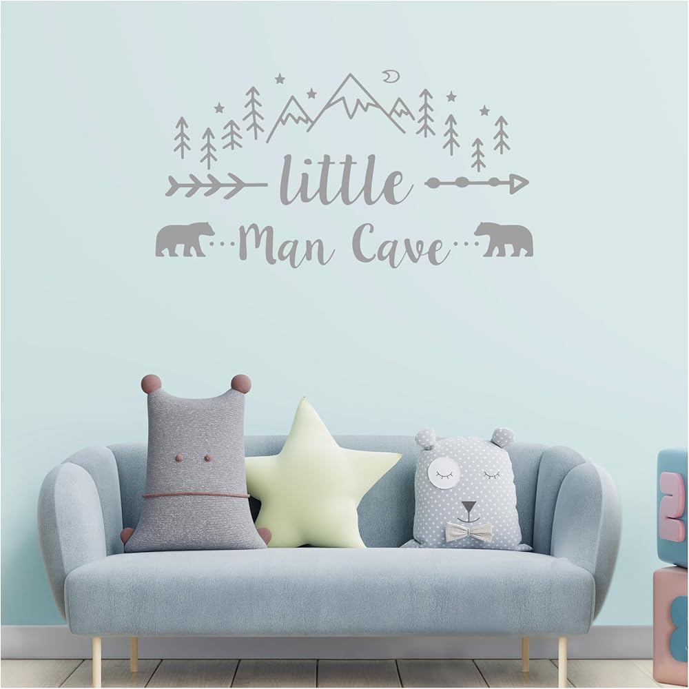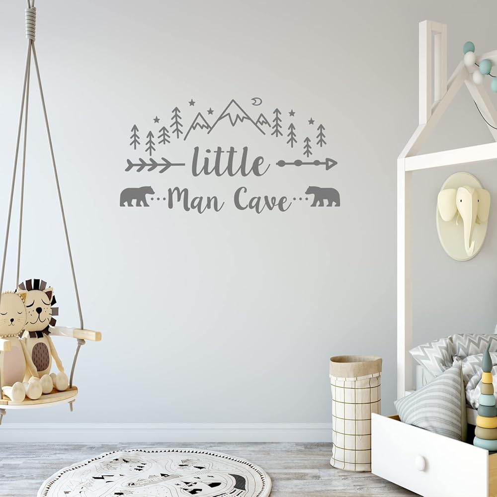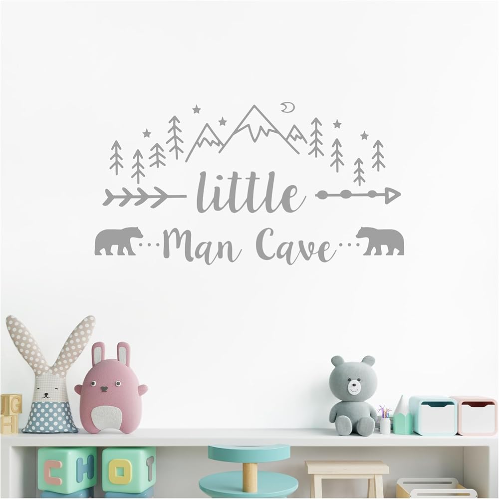 ملصق حائط لرجل صغير كهف، ملصق حائط فني جداري للبنين والجبال القبلية مطبوع عليه صورة دب ودب، ملصقات أسهم رجل كهف لغرفة الأطفال وغرفة الأطفال وغرفة نوم الأطفال والجداريات قابل للإزالة