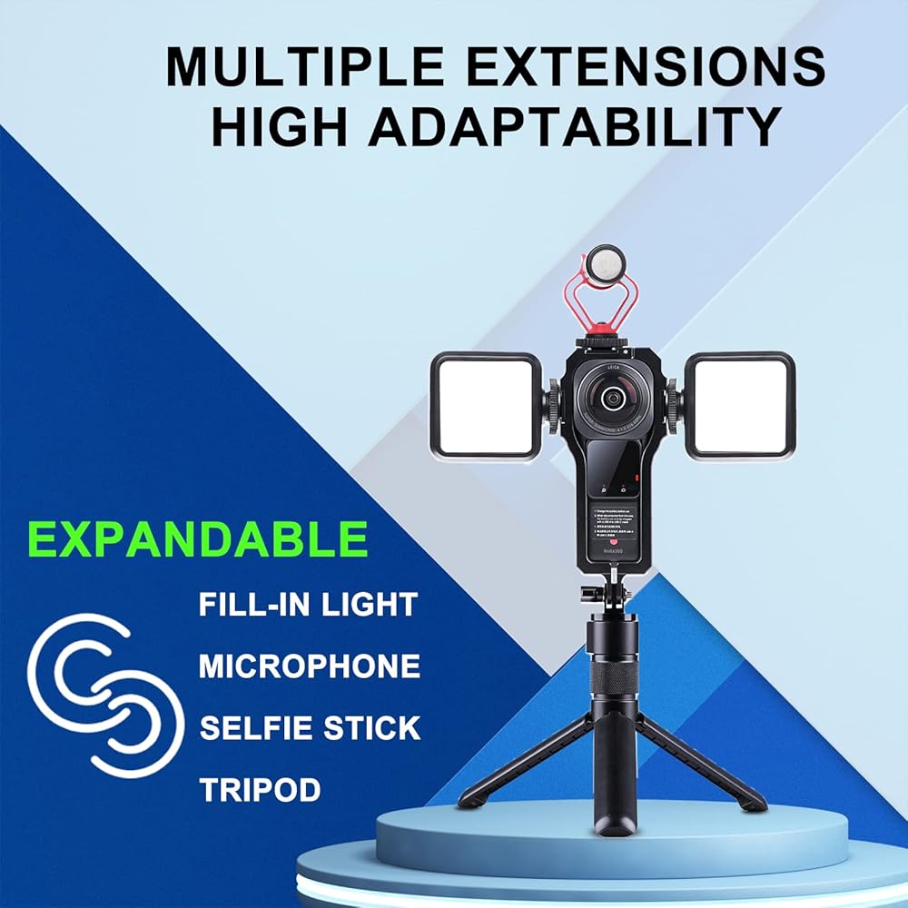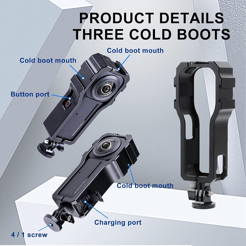 【تصميم حذاء بارد】هذا متوافق مع انستا 360 ون ار اس 1 انش إصدار 360 يتضمن تصميم إطار الحماية ثلاثة واجهات ممتدة للتبريد ويمكن تركيب مصابيح التعبئة والميكروفونات والعاكسات في نفس الوقت، وهو مناسب للفك والتشغيل؛