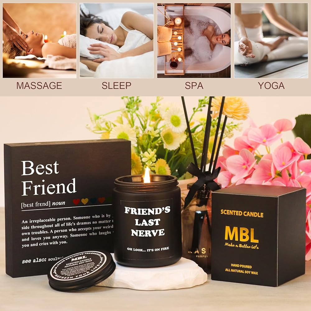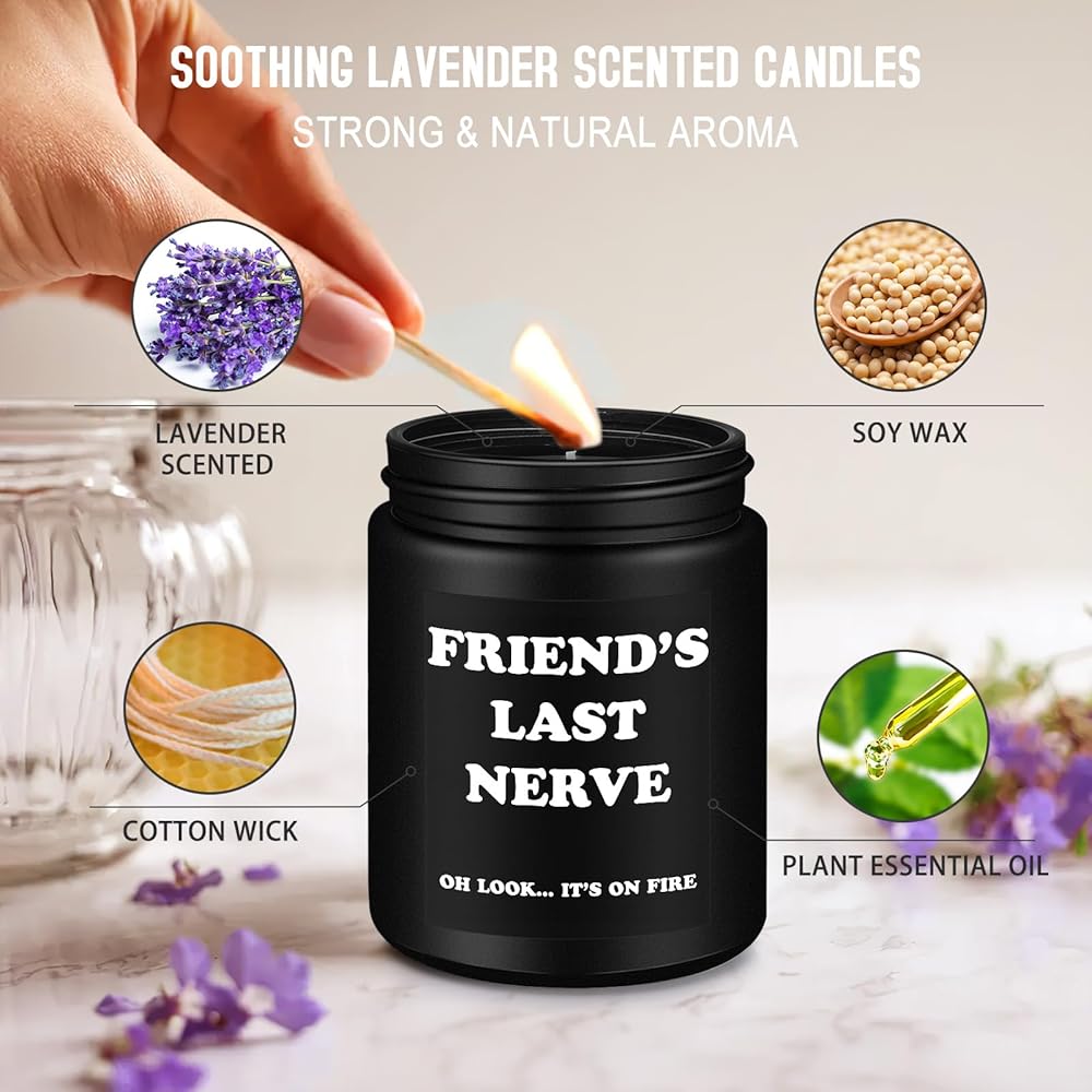 شموع الصويا الفاخرة: شموع MBL Home المعطرة باللافندر مصنوعة من مادة الصويا عالية الجودة، وهي عديمة الدخان. توفر هذه الشموع الزيتية العطرية الفاخرة رائحة قوية تدوم طويلاً، مع وقت احتراق يصل إلى 50 ساعة للشمعة التي تزن 7 أونصة. تتميز الشمعة بعبارة "العصب الأخير للأم، انظر... إنها مشتعلة!" مطبوعة عليها، والتي من المؤكد أنها ستضحك والدتك عندما تراها. كهدية مثالية لأمك، توفر هذه الشمعة جوًا مريحًا للتأمل واليوجا ووقت السبا!