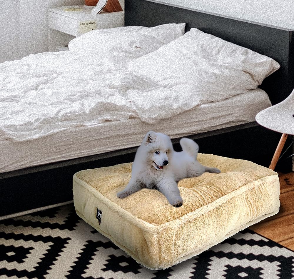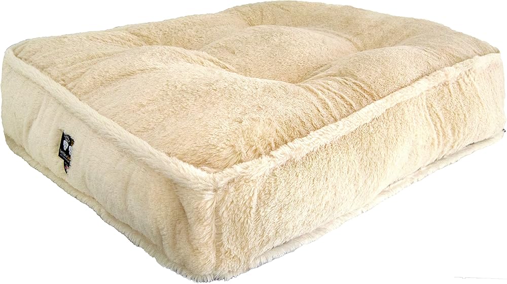 سرير مستطيل الشكل للحيوانات الأليفة والكلاب من بيسي آند بارني متوسط الشعر الطبيعي الفاخر الفاخر من الفرو الصناعي المخملي للغاية (مقاسات متعددة)