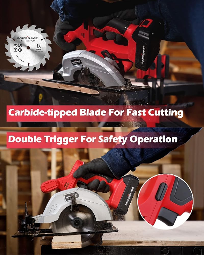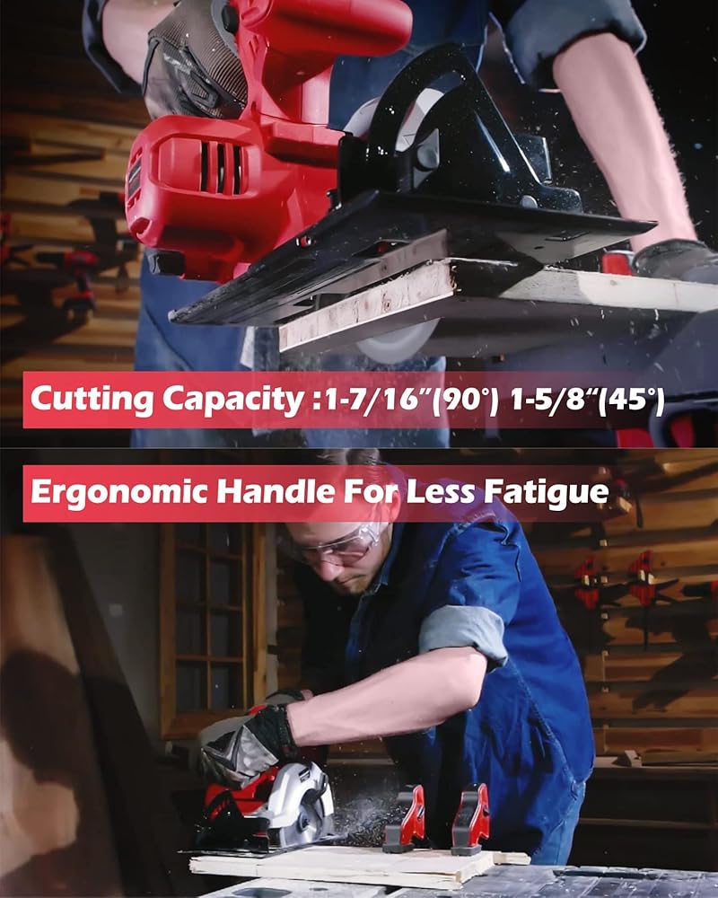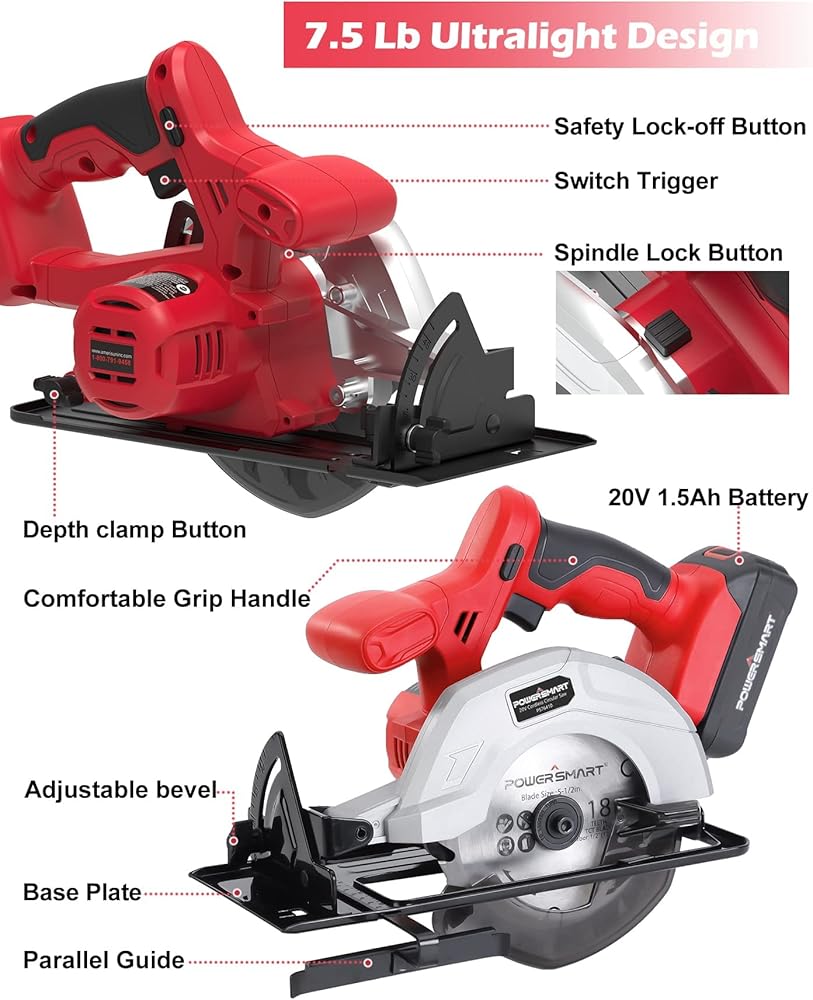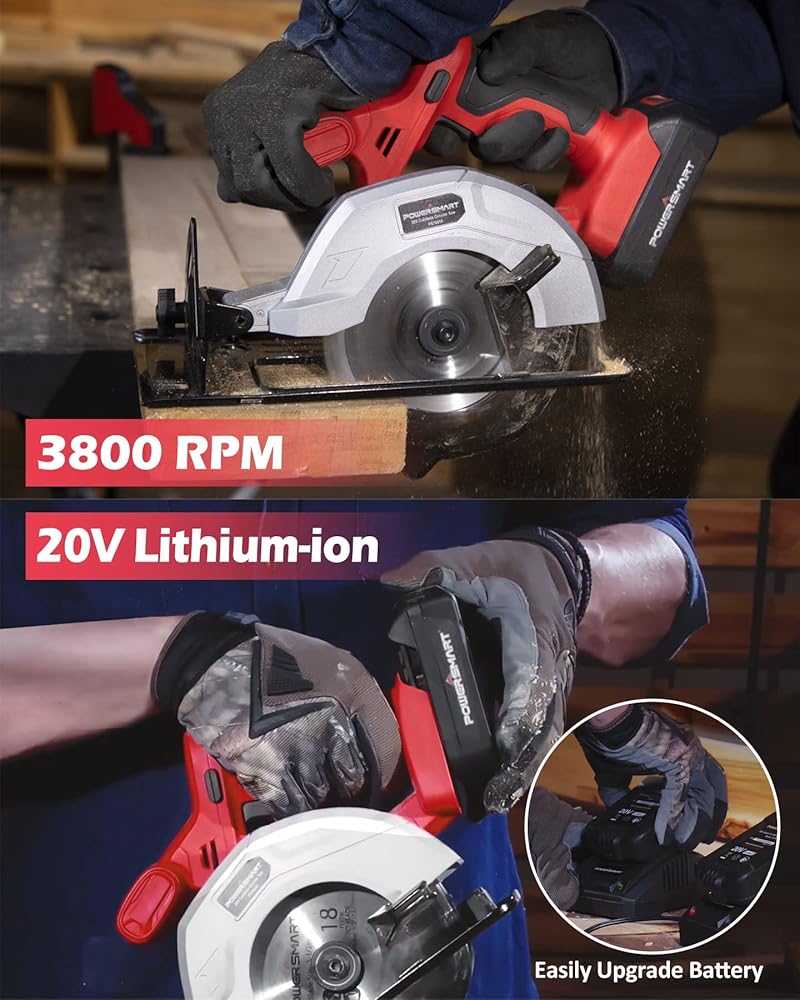 نظام بطارية عالمي 20 فولت: بطارية المنشار الدائري متوافقة مع جميع أدوات بور سمارت اللاسلكية. قطعة واحدة من بطارية ليثيوم ايون 20 فولت 1.5 امبير في الساعة مع مؤشر طاقة، مجهزة بشاحن سريع للحفاظ على المنشار الدائري اللاسلكي يعمل باستمرار باستمرار. أقصى سرعة إخراج 3800 دورة في الدقيقة، والتي تقطع بسهولة من خلال الخشب أو البلاستيك.