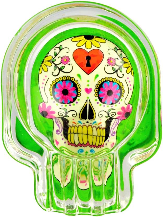 تأتي هذه الطفاية المتنوعة التي تتوهج في الظلام من شوجر سكل الزجاجية 6 في كل منضدة. تتميز كل منفضة سجائر من الست بتصميم مختلف ليوم الموت. نحن نحب مدى متانة منفضة السجائر الزجاجية هذه. لن يفوتك عملاؤك أبدًا في منفضة السجائر أثناء التدخين في الظلام.