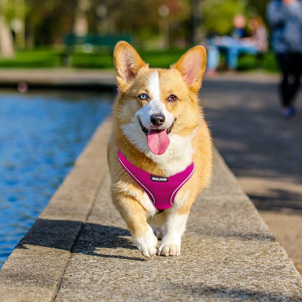 نسيج مسامي - مصنوع من نسيج شبكي هوائي 519D خفيف الوزن ومتين، سرج سترة الكلاب من azuza ناعم ومريح في الارتداء. مثالية للمشي في جميع الفصول. سهل الغسيل في الغسالة/اليدوي ويوصى بالتجفيف بالهواء ولكن لا يجفف بالمجفف.