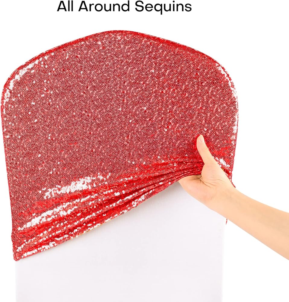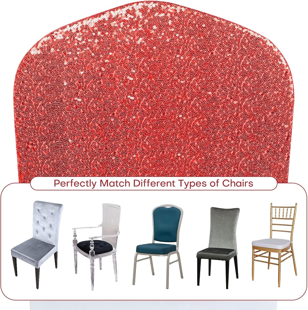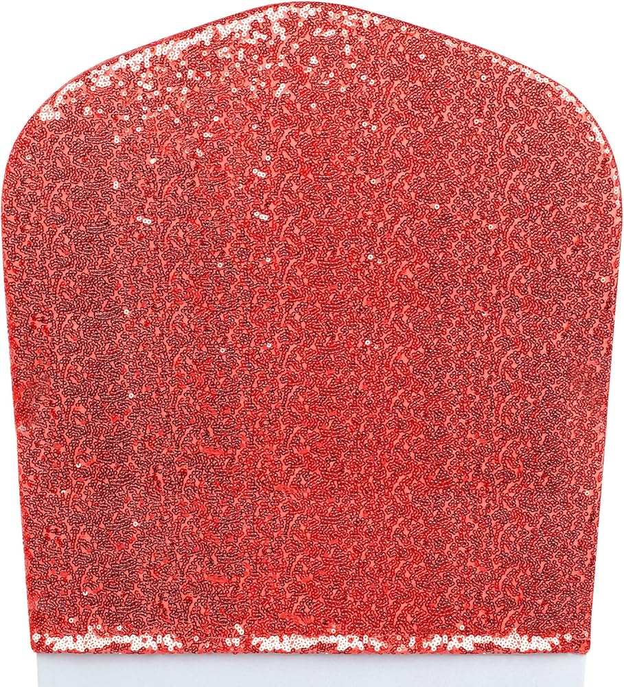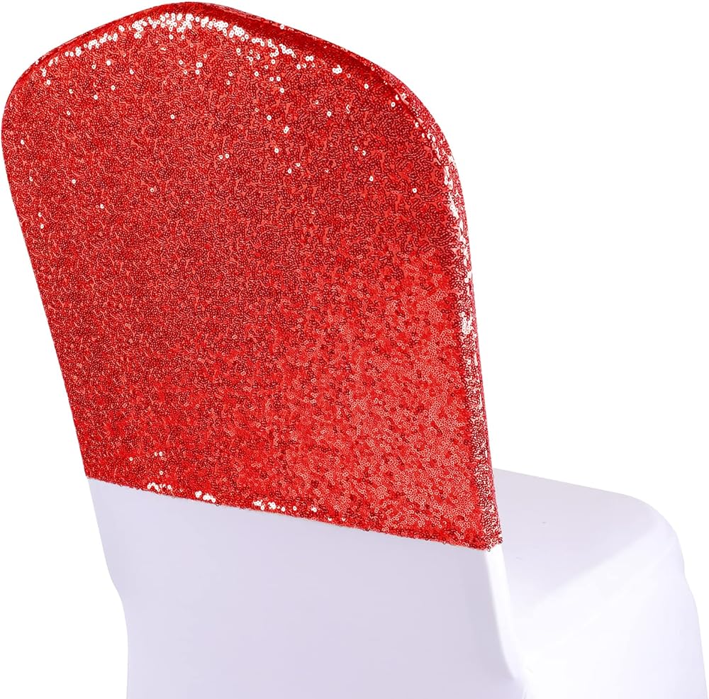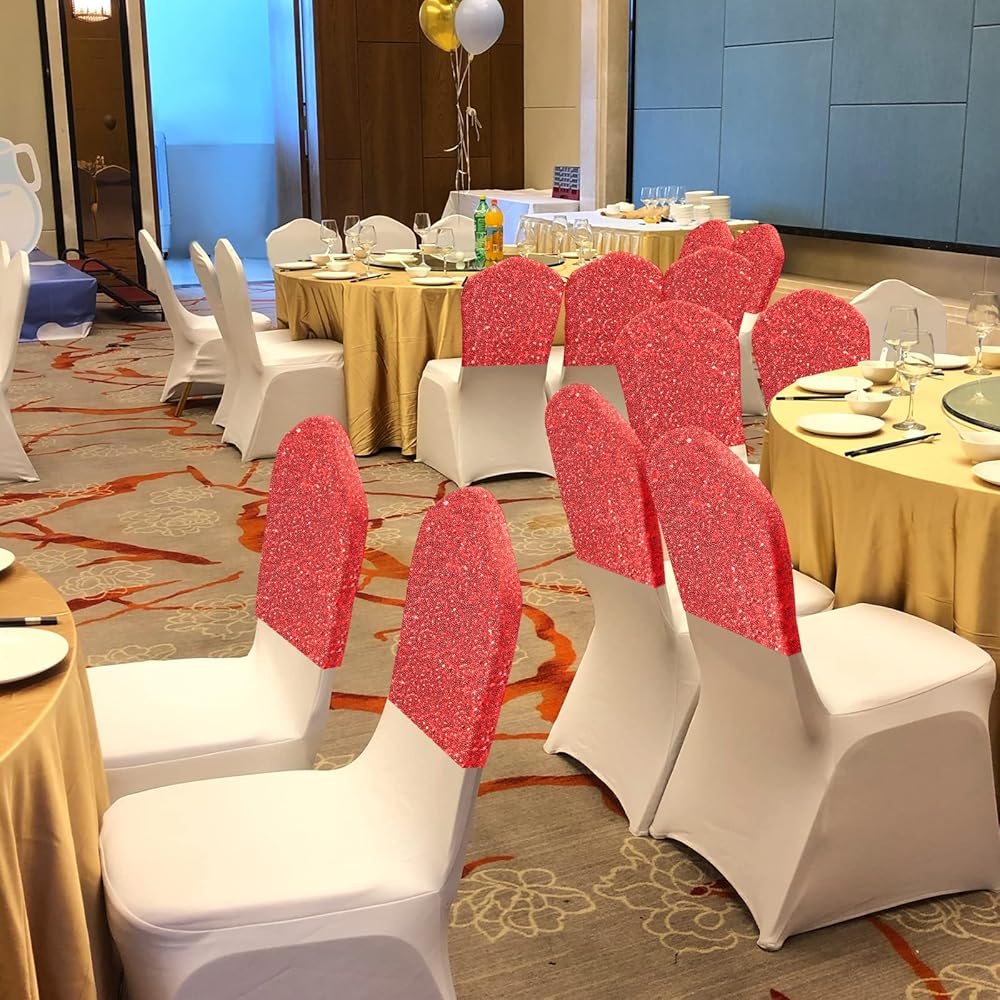 ANMINY 10 قطع أغطية خلفية للكراسي في جميع أنحاء أوشحة الكرسي الترتر أغطية انزلاقية قابلة للتمدد من الألياف اللدنة المزخرفة اللامعة اللامعة للولائم الرومانسية وحفلات الزفاف وديكور المنزل - أحمر