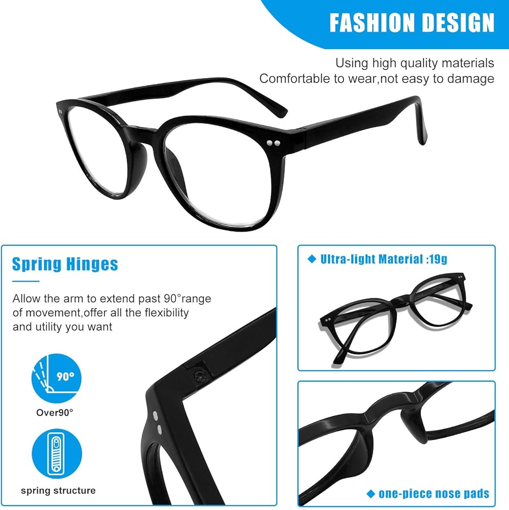 • نظارات مضادة للضوء الأزرق: نقاط قوة متعددة للاختيار. يمكنك اختيار القوة المناسبة وفقًا لاحتياجاتك. عدسات شفافة احترافية مضادة للانعكاس، تستعيد الألوان الحقيقية، وقوة تكبير دقيقة. توفر العدسة الكبيرة رؤية واضحة كبيرة وتجلب أفضل تجربة قراءة.